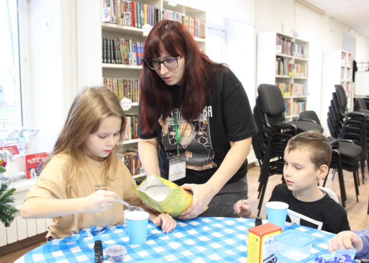 6 декабря в нашей модельной Клинской детской библиотеке № 2 проходил удивительный мастер-класс «Шипящая лаборатория», на котором дети стали парфюмерами-экспериментаторами. Прежде чем создать свой ароматный шедевр, участники погрузились в мир целебных свойств трав и минералов. Наши юные читатели узнали, чем полезна морская и магниевая соль для релаксации, а также почему смесь соды и лимонной кислоты создает необычную реакцию — завораживающее шипение в тёплой воде.