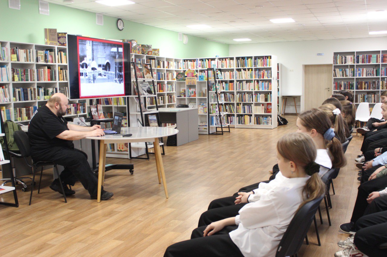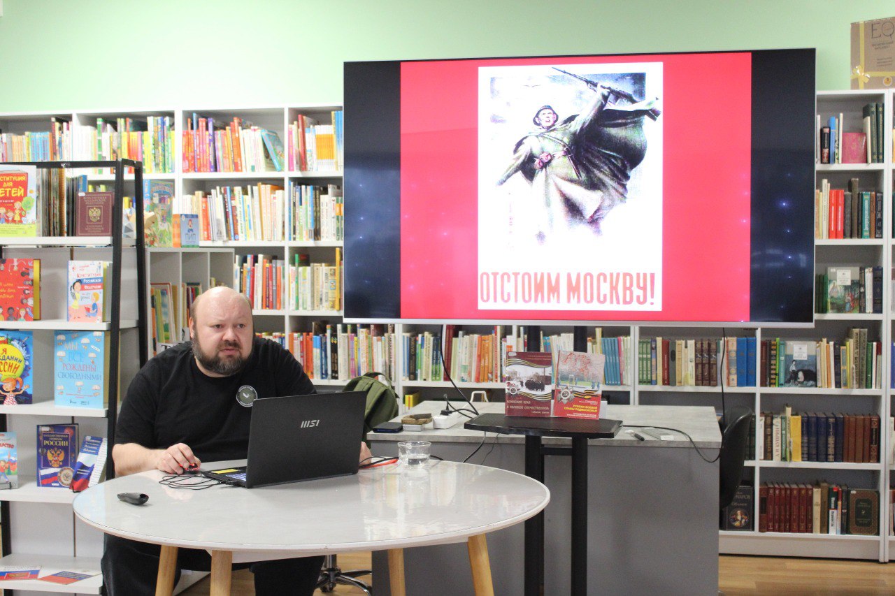 12 декабря в модельной Клинской детской библиотеке № 2 ученики 5 «В» класса лицея им. Д. И. Менделеева встретились с Павлом Пустыревым, председателем совета КРОО «Подвиг» и заведующим отделом историко-патриотического воспитания клуба «Спутник». Он рассказал им о начале контрнаступления Советской Армии под Москвой. Это событие стало ключевым моментом освобождения Клина от фашистов.