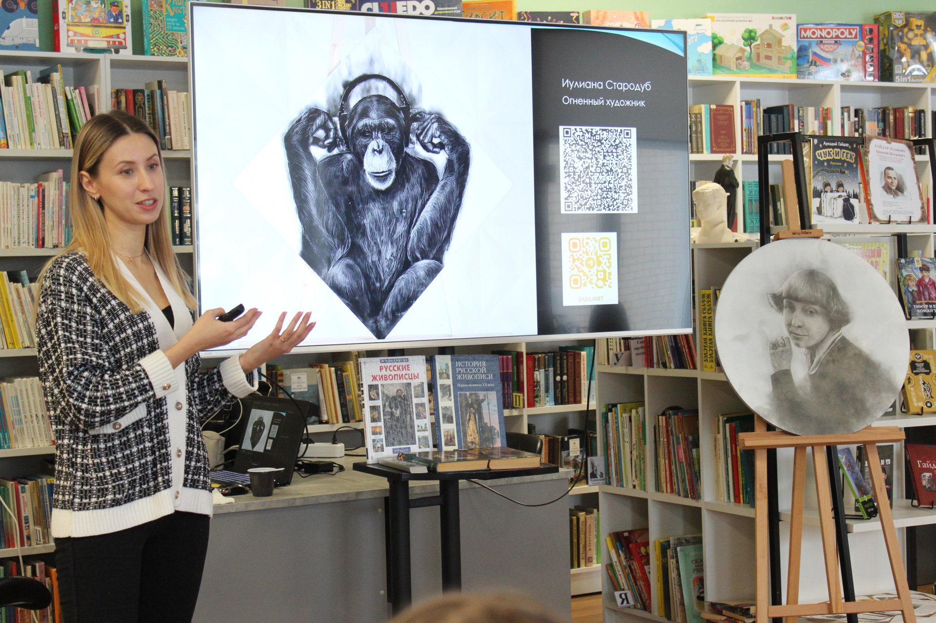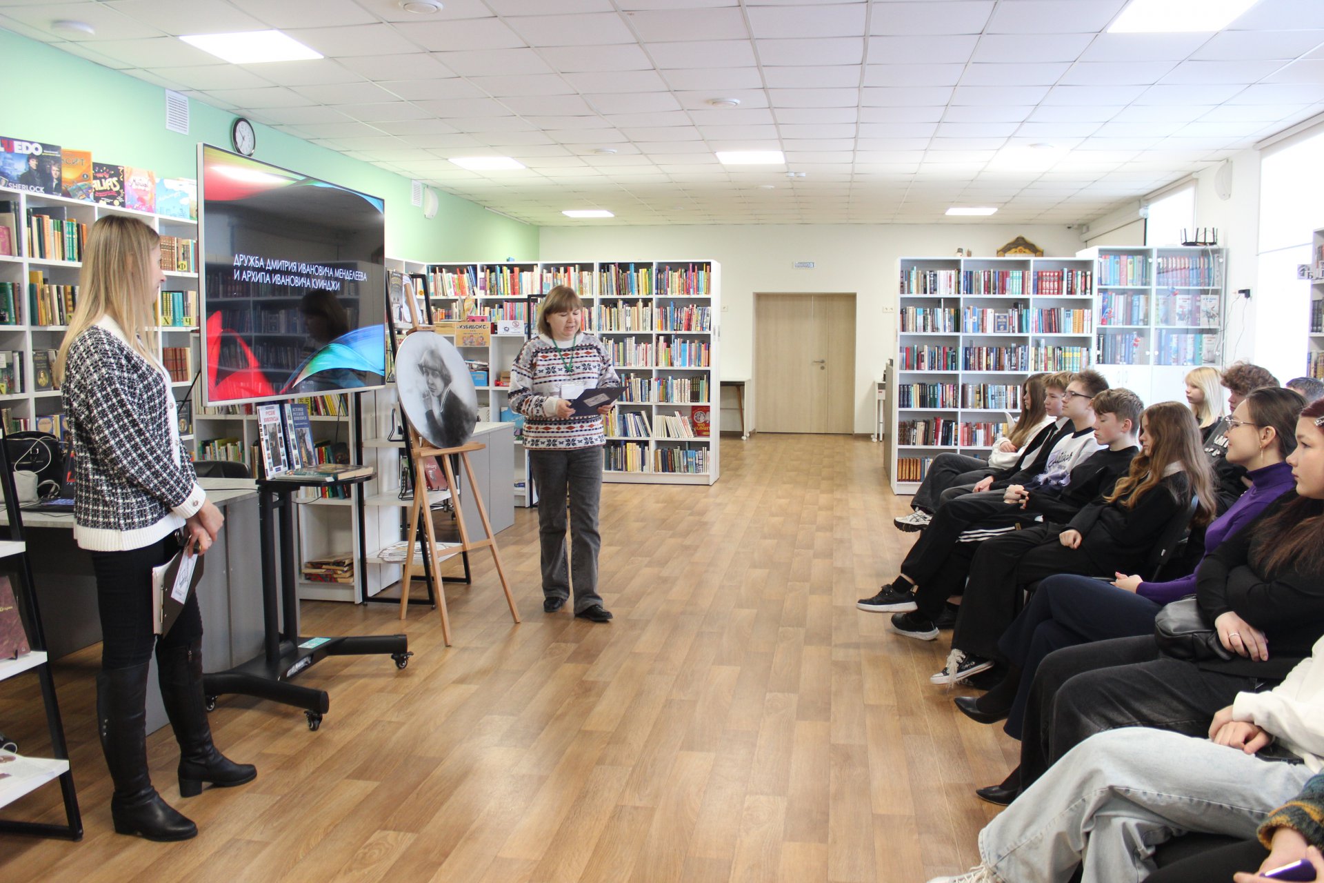 31 января в модельной Клинской детской библиотеке № 2 для восьмиклассников прошло тематическое мероприятие «Менделеев – художник. Наука и искусство». В рамках проекта «Код Менделеева: Гений на все времена» ребята погрузились в мир, где точность науки переплетается с вдохновением искусства.