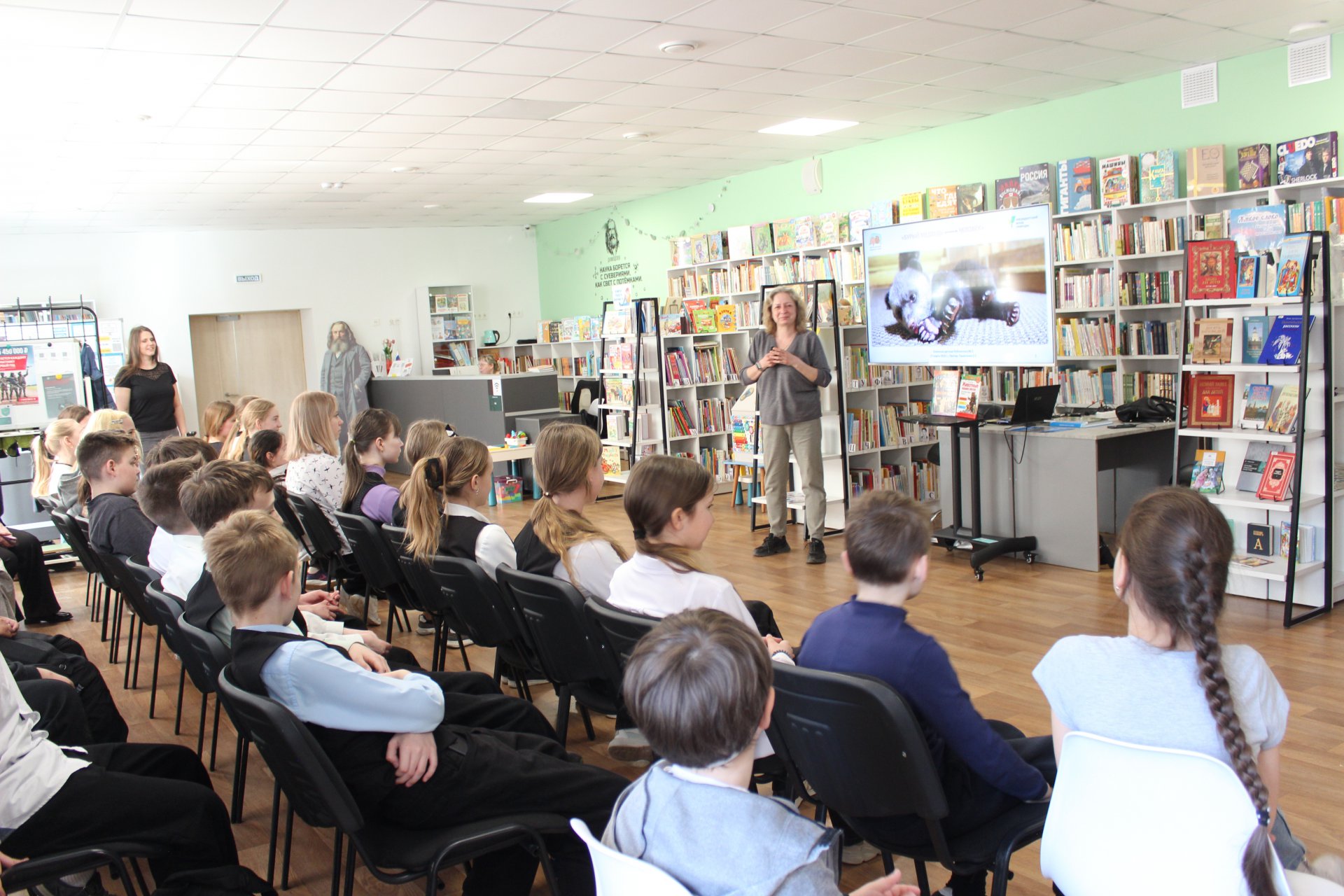 27 марта в модельной Клинской детской библиотеке № 2 прошла встреча учеников 6 «Б» класса лицея им. Д. И. Менделеева с Екатериной Сергеевной Пажетновой — биологом, специалистом по реабилитации медвежат-сирот, под названием «Мишуткины ясли». Юные читатели окунулись в мир дикой природы, где каждое рождение — это чудо, а каждое спасение — подвиг.