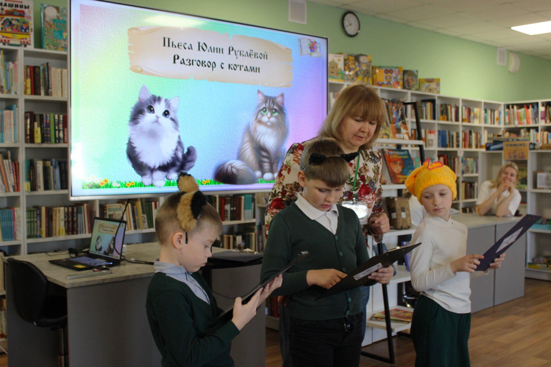 Ребята попали в книжное царство, где на полках собраны книги с произведениями со всего мира, на любой вкус и для детей всех возрастов. Им предстояло пройти испытания, чтобы стать лучшими читателями нашей библиотеки. Каждый этап программы стал для них возможностью проявить смекалку, находчивость и любовь к чтению. Участники с блеском справились с вопросами литературной викторины, проявив отличное знание народного фольклора. Затем с воодушевлением почитали по ролям забавную мини-пьесу Ю. Рублевой «Разговор с котами».