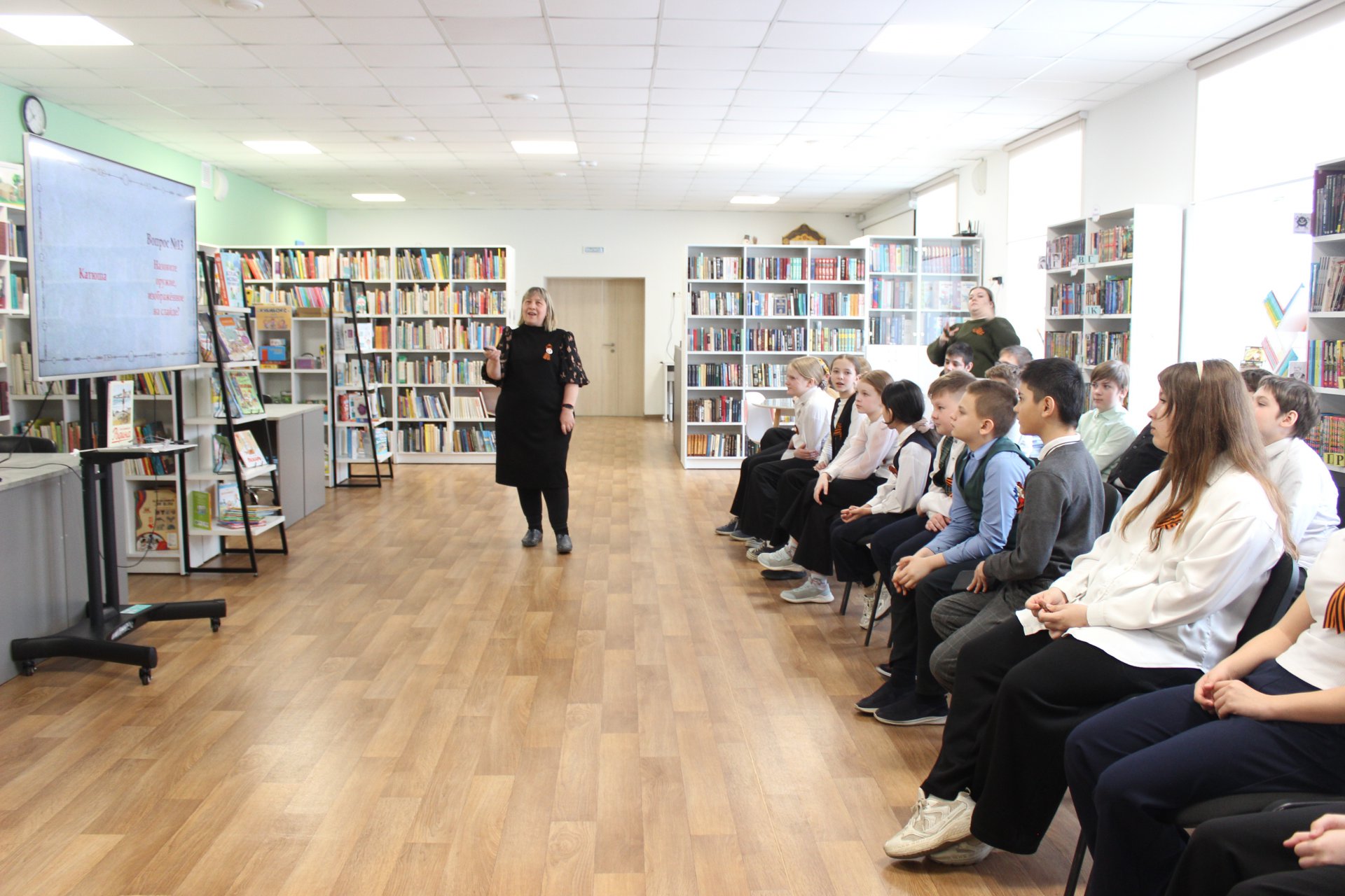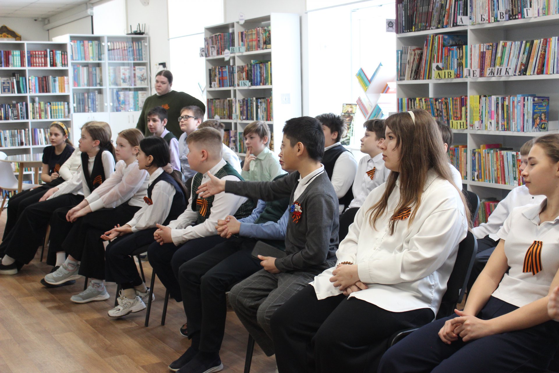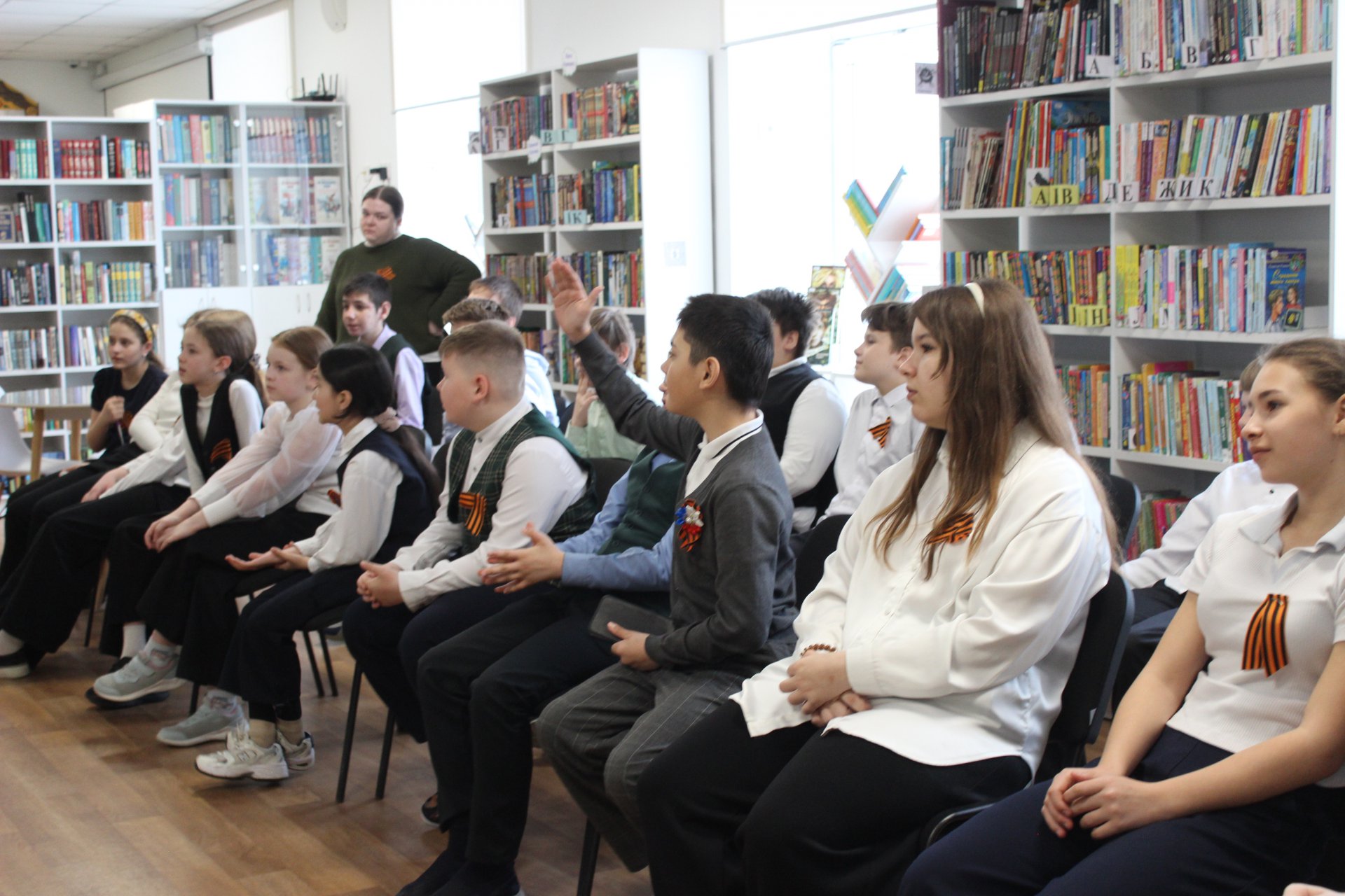 28 апреля в модельной Клинской детской библиотеке № 2 ученики 5 «Б» класса лицея им. Д. И. Менделеева приняли участие в интерактивной игре «Военное детство», посвящённой Дню Победы. Очень серьёзная и важная тема мероприятия заставила задуматься наших читателей о беспримерном героизме ребят, которые, несмотря на свой юный возраст, сражались за свободу Родины.