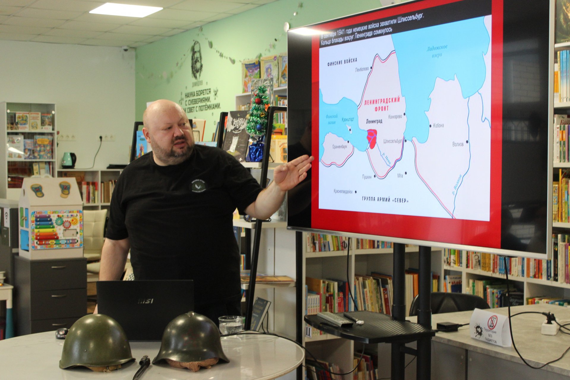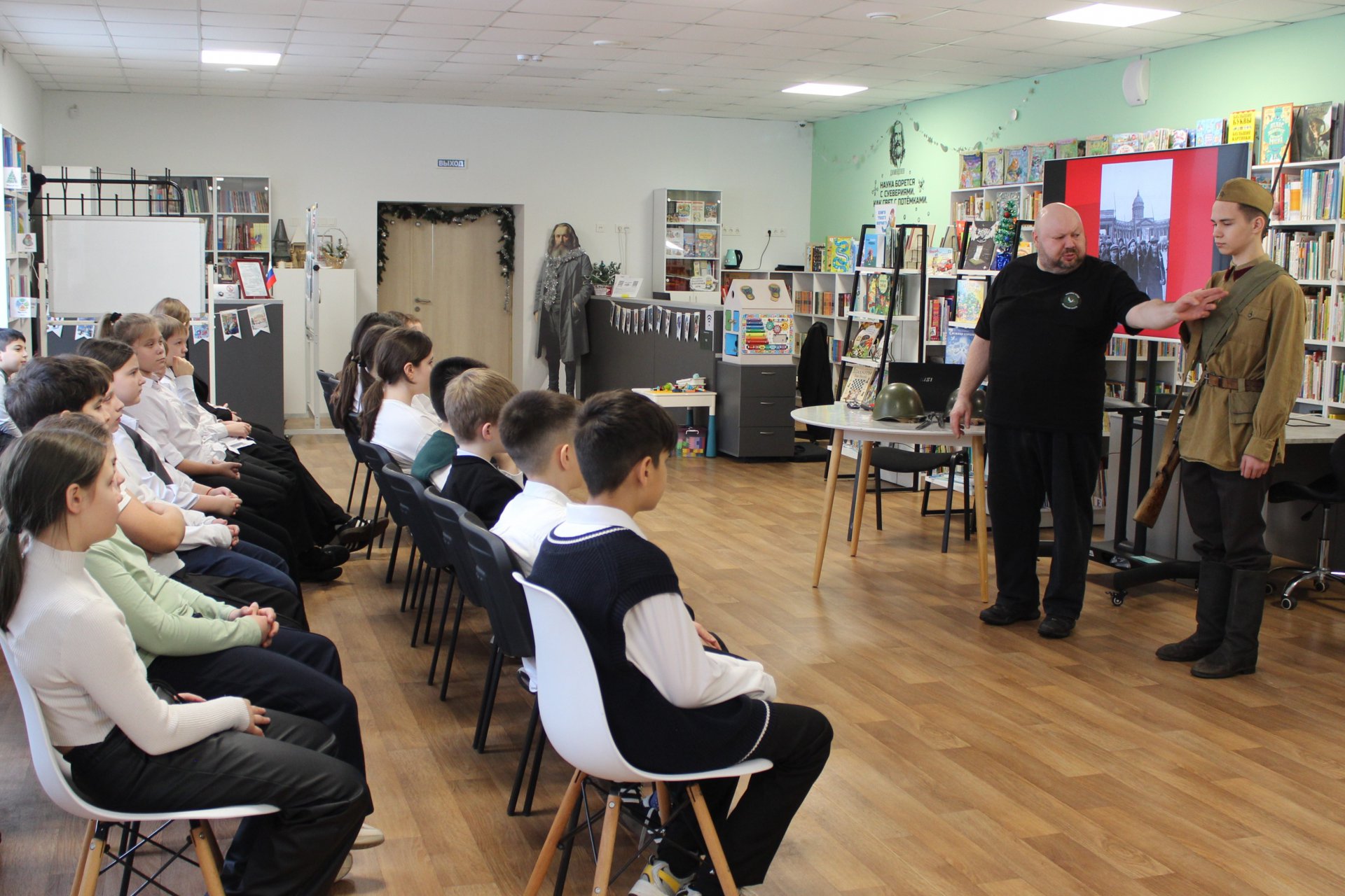 14 января в модельной Клинской детской библиотеке № 2 учащимся 5 «З» класса лицея им. Д. И. Менделеева Председатель совета КРОО «Подвиг», заведующий Отделом историко-патриотического воспитания клуба «Спутник» МБУК «ЦКС» Пустырев П. В. провёл урок мужества «Искра в блокадной ночи», посвящённый событиям блокады Ленинграда. Павел Валерьевич рассказал о героическом подвиге ленинградцев, который совершали не только солдаты – участники обороны, но и простые жители города, женщины и дети, работавшие наравне с мужчинами на заводах. Мальчишки и девчонки узнали о строительстве спасительной «дороги жизни» через Ладожское озеро и о норме хлеба блокадников, которые получали свой паёк по карточкам. Пустыреву П. В. помогали в проведении мероприятия, демонстрируя форму и оружие бойцов Красной армии, ребята из патриотического отряда «Подвиг». Подрастающее поколение должно понимать, как важно хранить память об этих страшных днях.