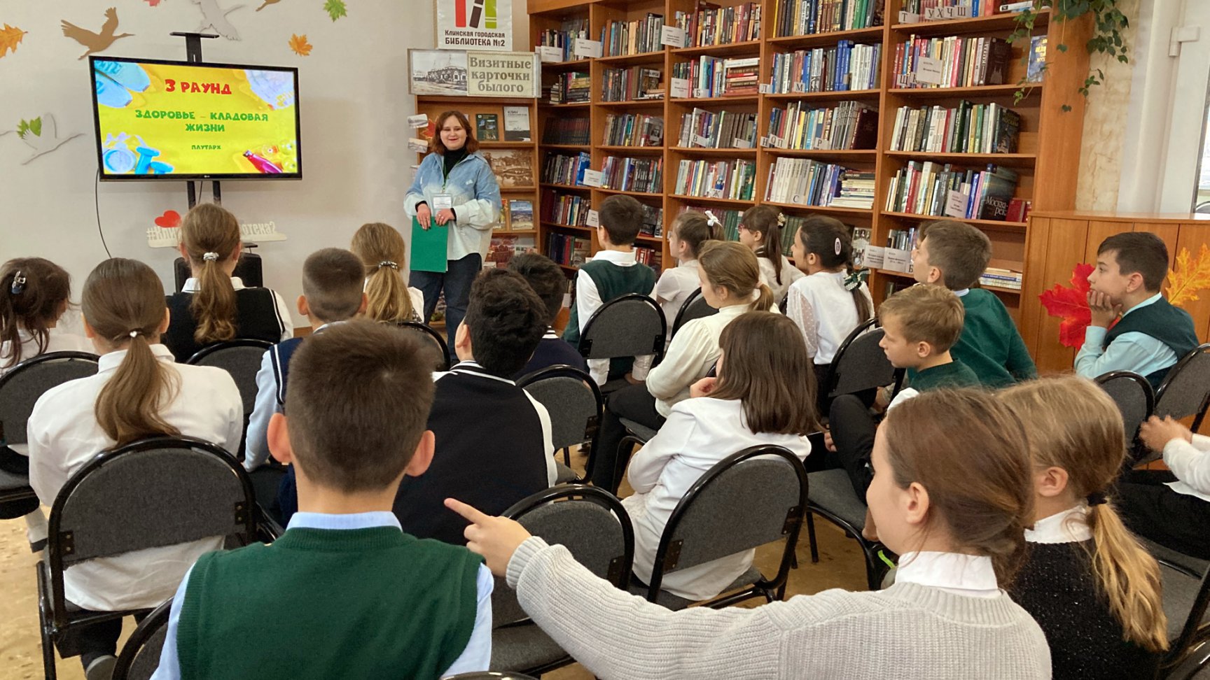 16 октября в Клинской городской библиотеке № 2 для учащихся лицея им. Д. И. Менделеева было проведено тематическое мероприятие «Здоровый образ жизни», прошедшее в формате увлекательной игры, состоящей из трёх раундов.