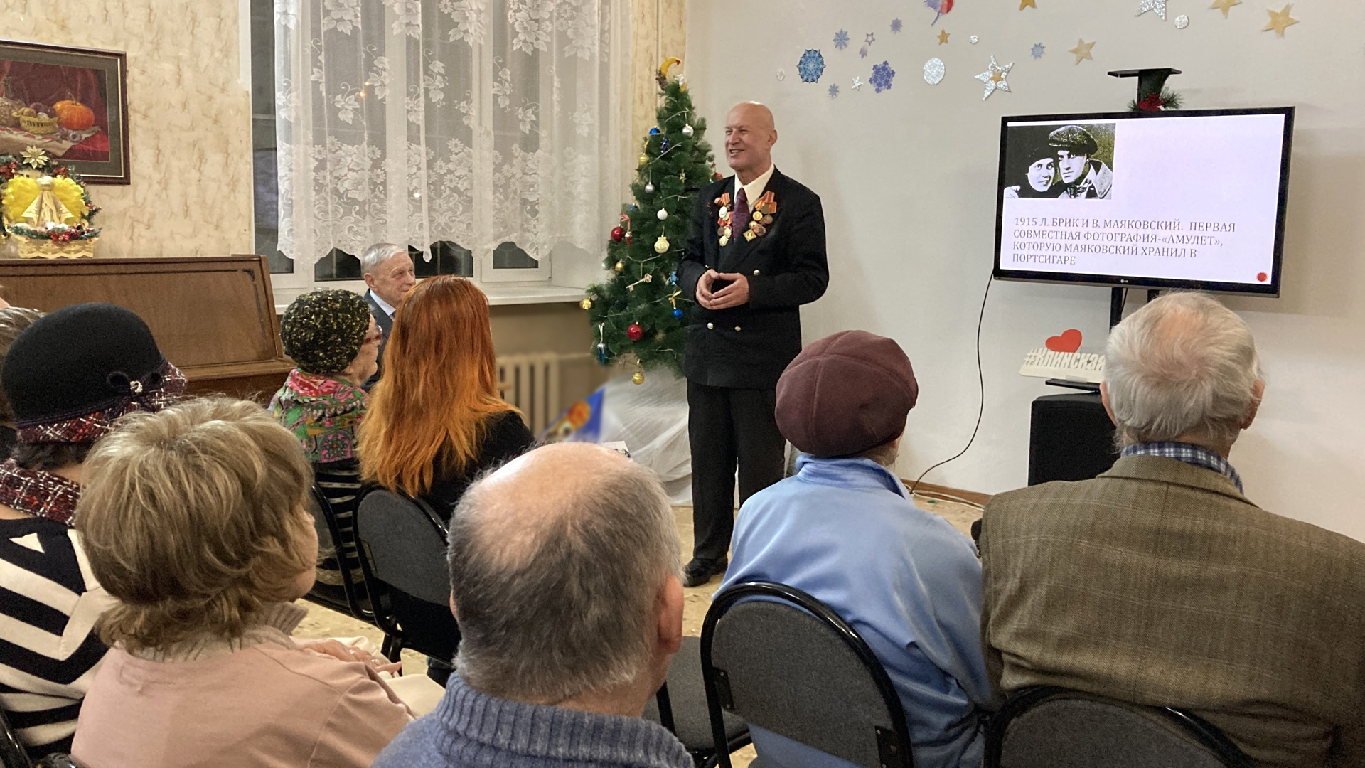 Любители поэзии и литературы собрались 4 декабря в Клинской городской библиотеке № 2 на увлекательную лекцию В. А. Иванова «В. В. Маяковский. Любовный треугольник». Виктор Александрович мастерски раскрыл перед слушателями многогранную и увлекающуюся натуру Владимира Маяковского, а талантливый клинский поэт Лев Николаевич Зубачев добавил глубины выступлению, исполнив стихи поэта.