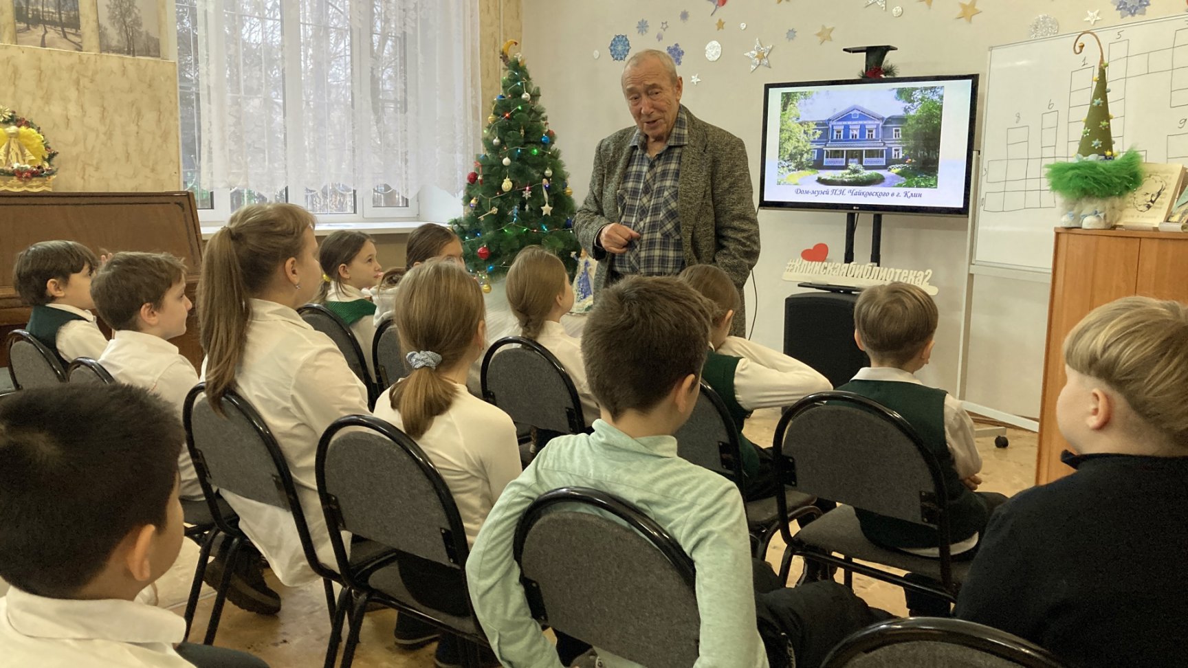 Краевед В. М. Пернавский поделился с ребятами интересными фактами о том, как П. И. Чайковский находил вдохновение в живописных окрестностях Клина, наслаждаясь тишиной русской природы. Он рассказал, как дом композитора превратился в настоящий музей, бережно хранящий память о гении.