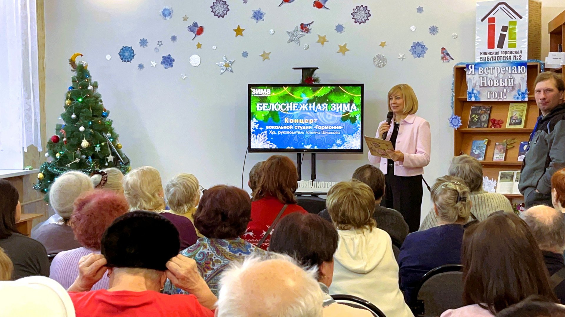5 января Клинская городская библиотека № 2 распахнула свои двери для читателей, пригласив их на особенное событие – волшебный концерт «Белоснежная зима». Этот музыкальный подарок преподнесла им вокальная студия «Гармония» под руководством Татьяны Шишковой. Голоса талантливых артистов, словно снежинки, кружились в воздухе, наполняя библиотеку музыкой и искренними эмоциями. Каждый аккорд, каждая нота вызывали бурю аплодисментов, ведь звучали самые любимые песни, согревая сердца в этот зимний день.