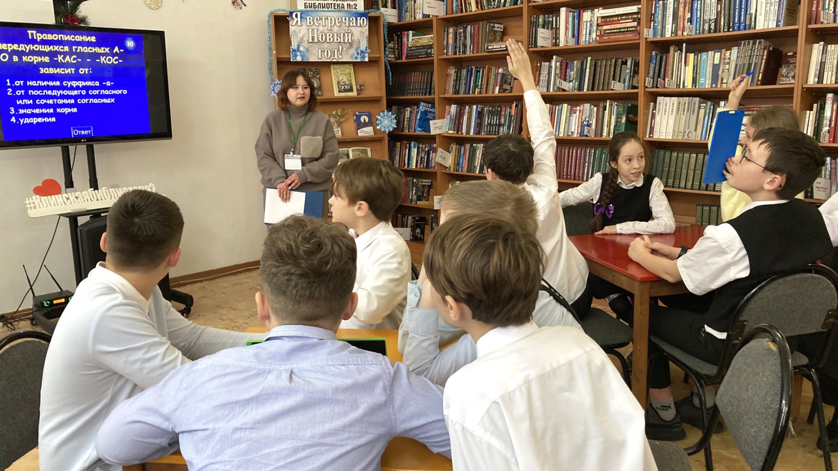 15 января в Клинской городской библиотеке №2 шестиклассники Православной классической гимназии «София» вспомнили правила русского языка в ходе интерактивной игры «Грамотным быть модно», приуроченной ко Дню российской печати. Игра прошла в атмосфере живого общения и здорового соперничества, где участники с азартом отвечали на вопросы и разгадывали загадки. Туры игры были посвящены фразеологизмам, пословицам, орфографии.