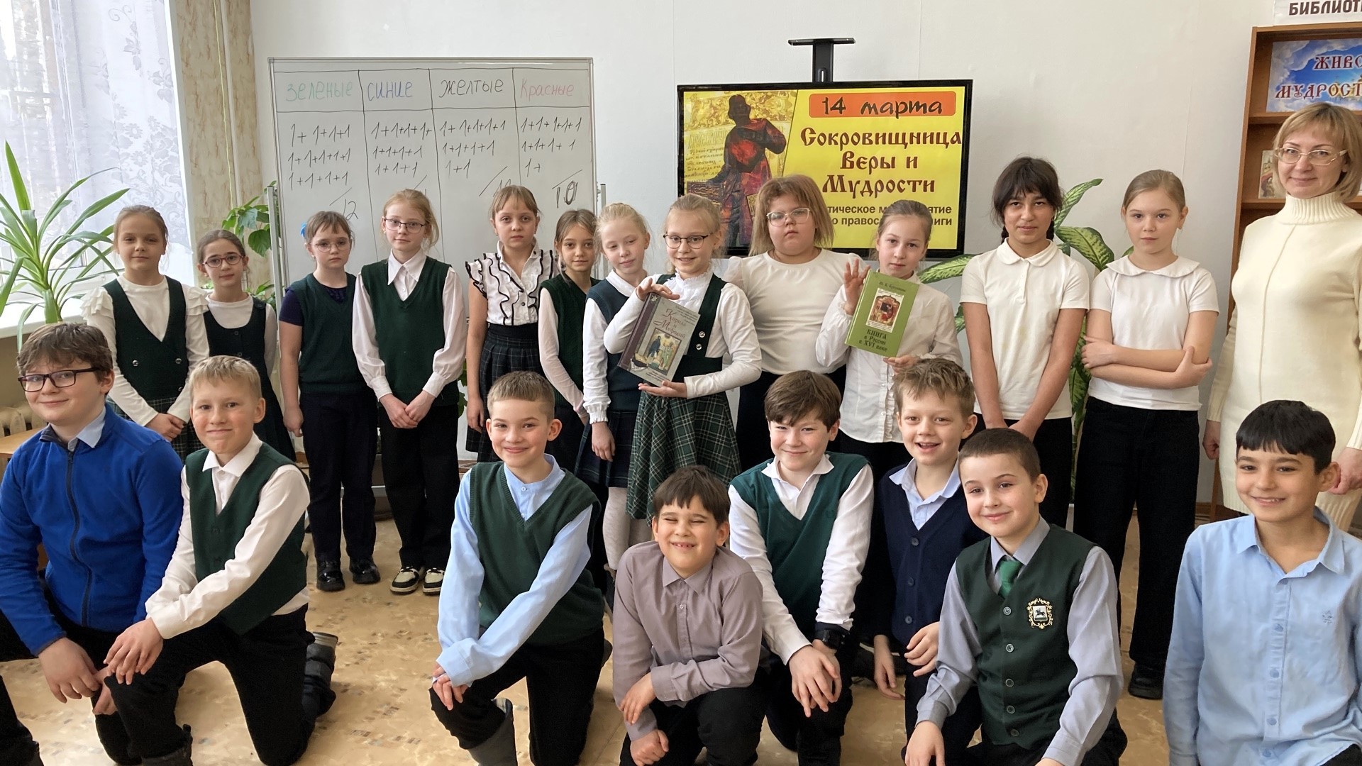 13 марта в Клинской городской библиотеке № 2 ученики лицея им. Д. И. Менделеева стали участниками тематического мероприятия «Сокровищница Веры и Мудрости», посвященного Дню православной книги. В рамках кторогог юные лицеисты получили уникальную возможность прикоснуться к истокам русского языка и культуры. Они попробовали свои силы в чтении старославянских текстов, что стало для многих настоящим открытием. Затем ребята с большим энтузиазмом отвечали на вопросы тематической викторины «Живая энциклопедия», демонстрируя свои знания и любознательность.