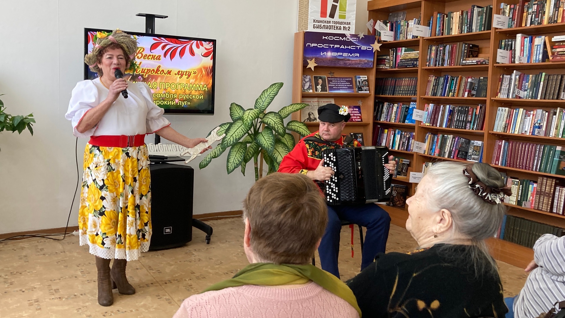 3 апреля в Клинской городской библиотеке № 2 читателей ждала праздничная программа под названием «Весна на Широком лугу», которая подарила всем чудесное настроение. Артисты ансамбля русской песни «Широкий луг» своим выступлением словно перенесли нас в самое сердце весны, исполнив душевные народные песни о любви. А задорные мелодии баяна и аккордеона никого не оставили равнодушными, наполнив зал веселыми частушками и искренним смехом! Зрители пели, танцевали и аплодировали стоя. На сцене царила настоящая весенняя магия!