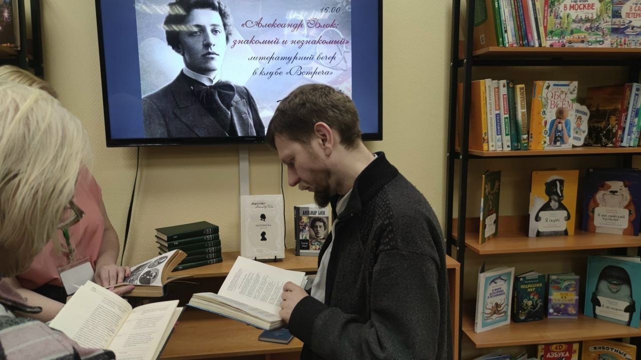 Присутствующие узнали много интересных фактов о жизни и творчестве А. Блока, отметили уникальность его поэтического дара, сочетавшего мистицизм и глубокую лиричность. Участники клуба с удовольствием слушали стихи поэта. Звучали как хрестоматийные произведения – пронзительная «Незнакомка», так и менее известные, но не менее глубокие лирические миниатюры.