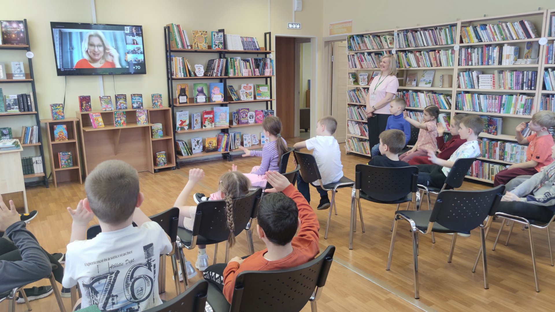 24 марта в Клинской городской библиотеке им. М. М. Пришвина в рамках Всероссийской акции «Неделя детской книги – 2026» для учащихся Центра детства «Жемчужинка» состоялась онлайн-встреча с детскими писательницами Катей Матюшкиной и Екатериной Оковитой.