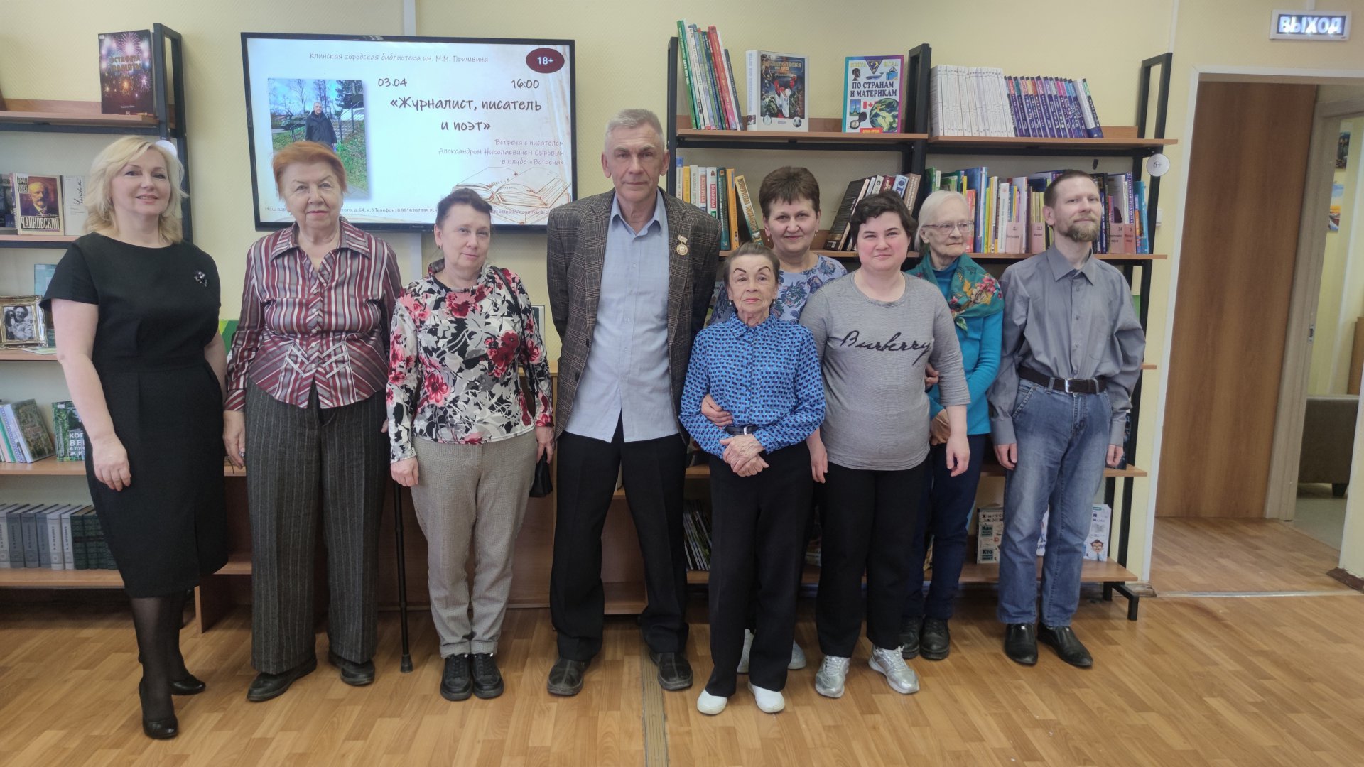 3 апреля в Клинской городской библиотеке им. М. М. Пришвина состоялась встреча «Журналист, писатель и поэт», посвященная творчеству Александра Сырова. Литературно-краеведческий клуб «Встреча» собрал участников программы «Активное долголетие» и других почитателей таланта поэта. Открывая вечер, Александр Николаевич сразу нашел ключ к сердцам слушателей. Вместо долгих вступлений он прочитал искренние стихи, посвященные Клину, который стал для него родным.