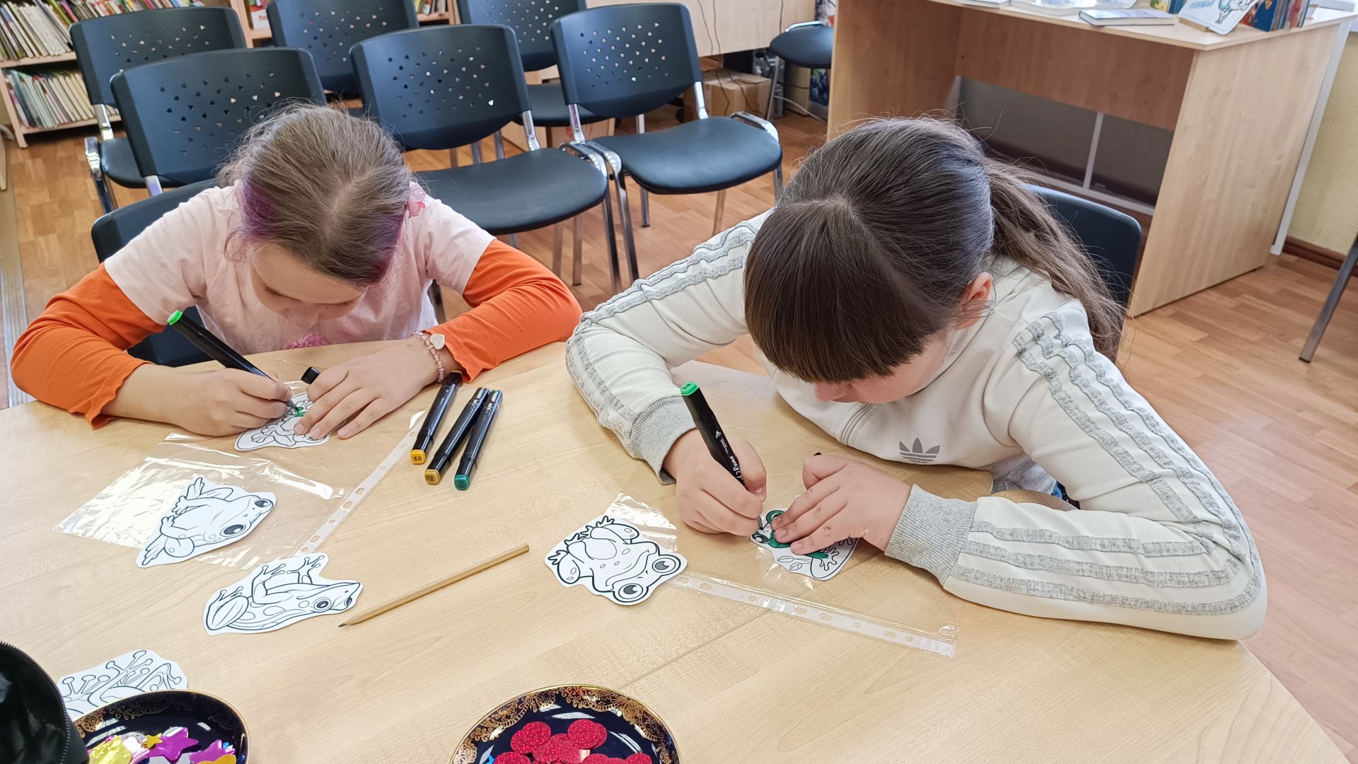 На нашей встрече Читайка Семейкин предложил ребятам украсить лягушку, персонажа книги К. Булычева «Бумажные герои». Дети с радостью включились в творческий процесс, и вскоре появились яркие и разные герои книги.