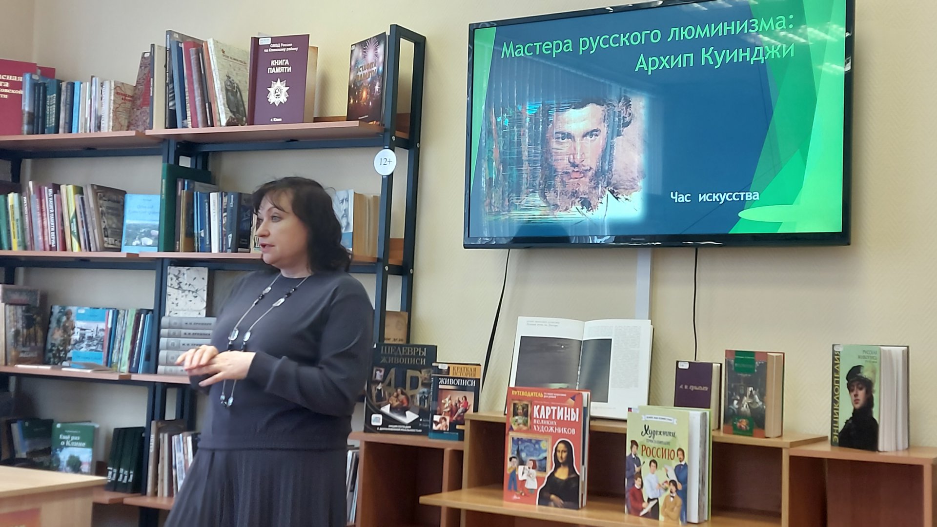 Лектор — сотрудник Центральной городской библиотеки Котова Ольга Николаевна — подробно рассказала о жизненном пути художника: от сына бедного греческого сапожника из Мариуполя до профессора Академии художеств. Всех потрясли интересные факты биографии Архипа Ивановича, который на пике славы ушёл в «затворничество» почти на 20 лет. Присутствующие также узнали, что люминизм — это не просто техника, а умение сделать свет главным героем полотна. Куинджи заставлял краски буквально светиться изнутри. Особый отклик у аудитории вызвал рассказ о философии света. Куинджи, изображая, например, солнце или луну, показывал свет как состояние души.