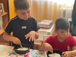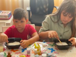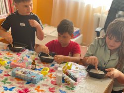 Во время занятия ребята активно общались, помогали друг другу и делились идеями. Каждый участник смог самостоятельно изготовить свою уникальную версию игрушки, используя всего два простых компонента: клей ПВА и тетраборат натрия. Под руководством опытного наставника они поэтапно смешивали ингредиенты, наблюдая удивительную трансформацию обычной смеси в эластичную тянущуюся субстанцию!