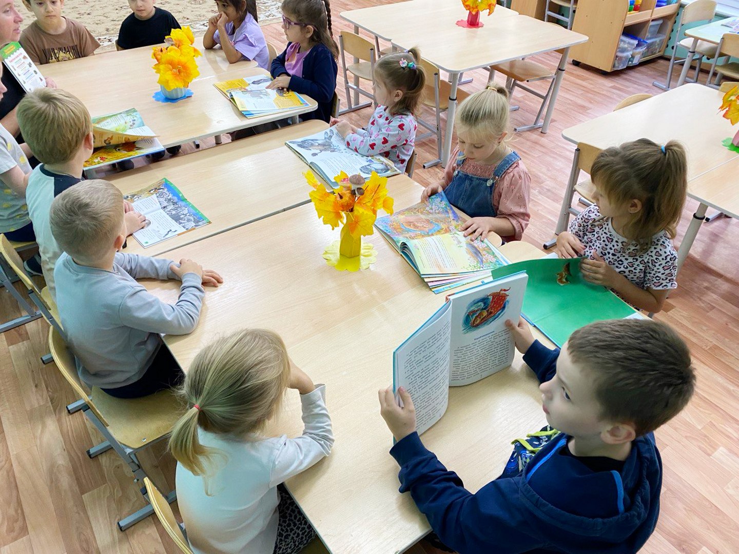 Сначала мы вместе с малышами совершили путешествие в книжный лес, где дети познакомились с подборкой книг о забавных зверятах, рассмотрели яркие иллюстрации, послушали информацию об их содержании и поделились своими впечатлениями. Затем наступило время коллективного чтения книги «Лисенок и другие звери в лесу. Познавательные истории», автором которой является Фридерун Райхенштеттер. Ознакомившись с ней, мальчишки и девчонки обсудили поведение персонажей, их привычки и интересные особенности. В продолжение встречи всех ждала увлекательная игра «ЭКО‑Крокодил», где требовалось жестами и мимикой изобразить разных животных, чтобы другие ребята смогли их угадать. Смех, азарт и море положительных эмоций наполнили зал!