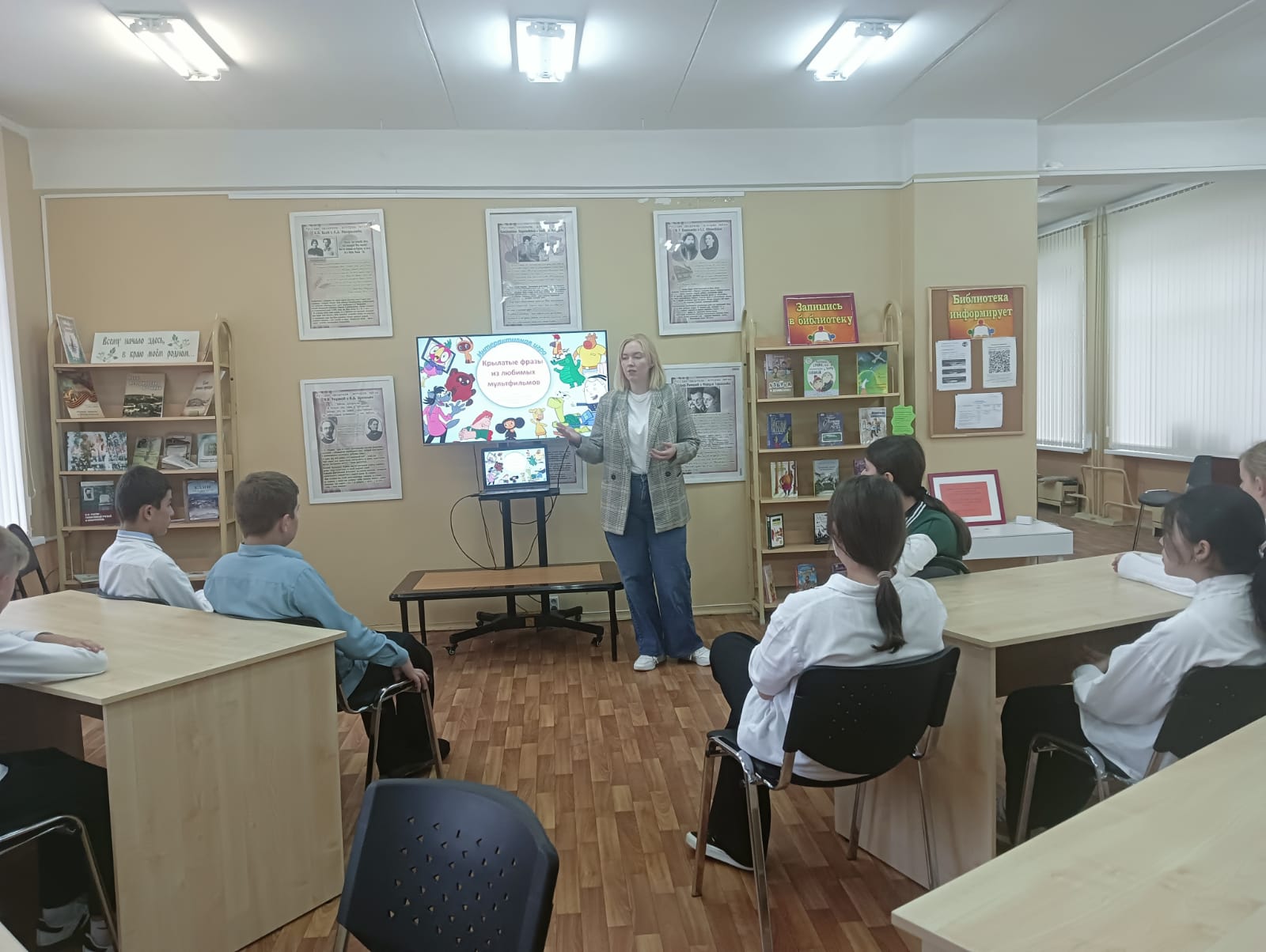 Разделившись на команды «Умники» и «Умницы», юные читатели с увлечением выполняли задания занимательной викторины, отвечали на интересные вопросы, проверяя свои знания в области детской литературы, мультфильмов и кино. Дополнительные баллы ребята получили в ходе анализа басен И.А. Крылова. Они обсуждали главную мысль произведений этого автора, а также размышляли о том, как важно оставаться добрым и отзывчивым человеком. С отрывом всего лишь в один балл победила команда «Умницы».