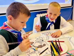 Библиотекари рассказали о его сотрудничестве с журналом «Мурзилка» и о том, как он оживлял страницы книг Драгунского, Андерсена, Чуковского, Успенского и многих других. Особый восторг у ребят вызвало известие о том, что именно Виктор Чижиков подарил нам всеми любимого олимпийского Мишку! Школьники с удовольствием рассматривали книги с иллюстрациями художника, узнавая знакомых персонажей. Затем настало время для творчества! На мастер-классе каждый ребенок смог почувствовать себя настоящим художником, раскрашивая силуэты любимых героев.
