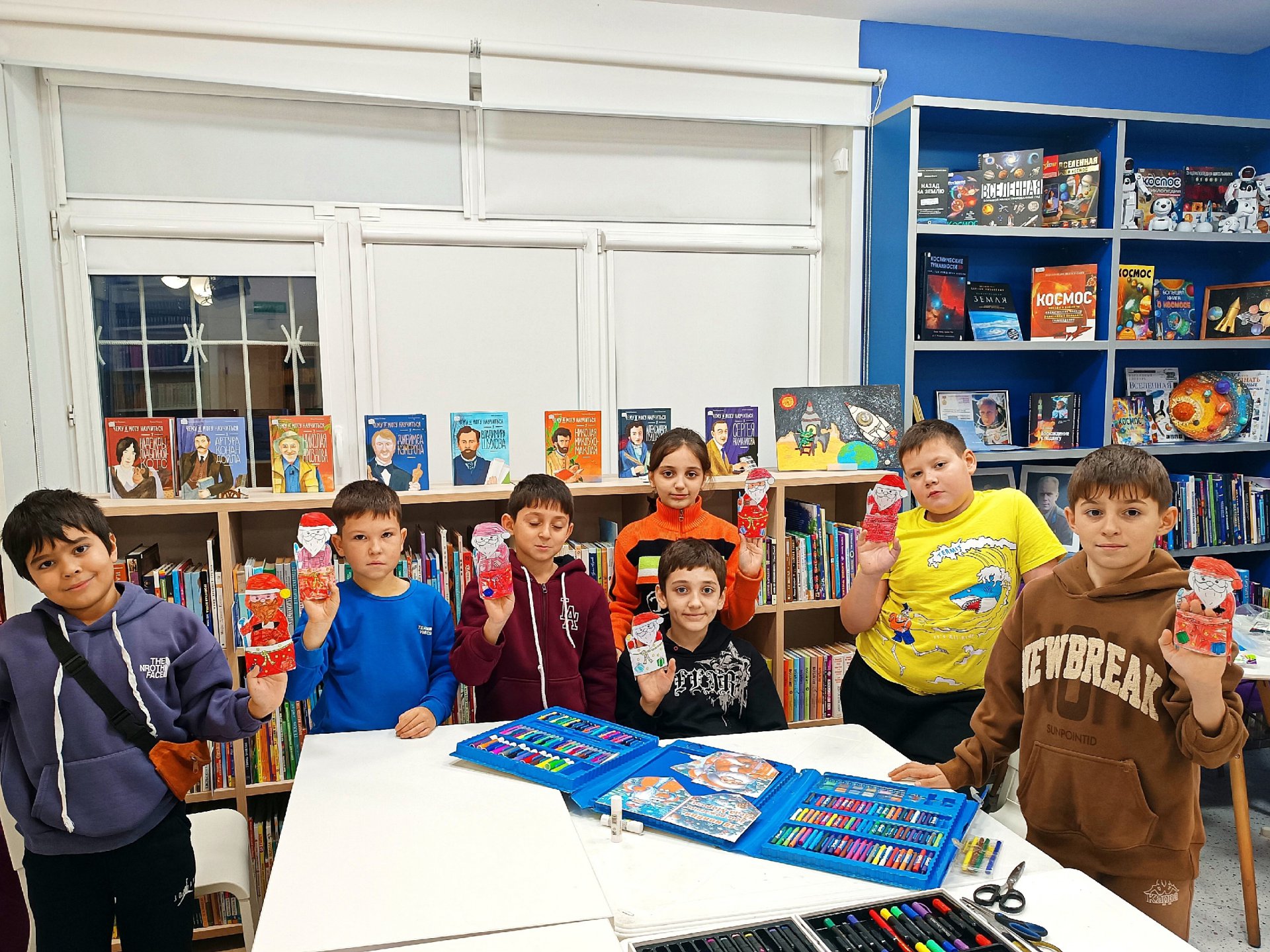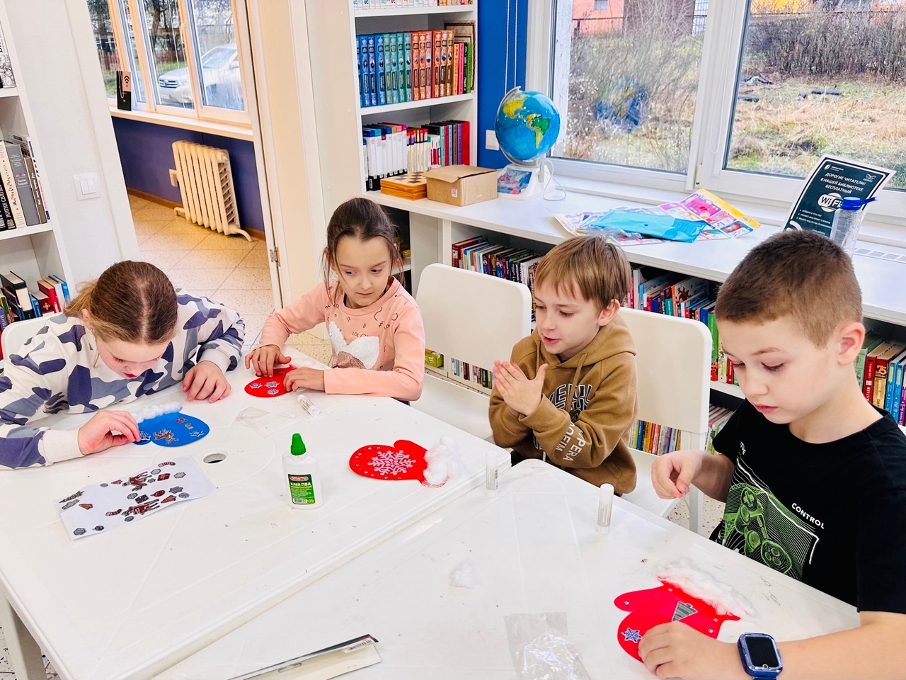 После интеллектуальных баталий юные читатели погрузились в мир творчества. Кто-то смастерил уникальные варежки, а кто-то принялся за создание объемной фигурки Деда Мороза, раскрашивая детали и собирая их в единое целое. Атмосфера была волшебной: смех, обсуждения и фантазия помогли сделать настоящие шедевры.
