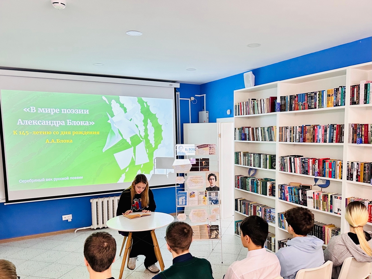 Сегодня юные читатели приняли участие в громких чтениях. В зале звучали пронзительные строки Блока, наполненные музыкой и глубоким смыслом. Атмосфера была по‑настоящему вдохновляющей – словно сам дух Серебряного века заглянул к нам в гости.