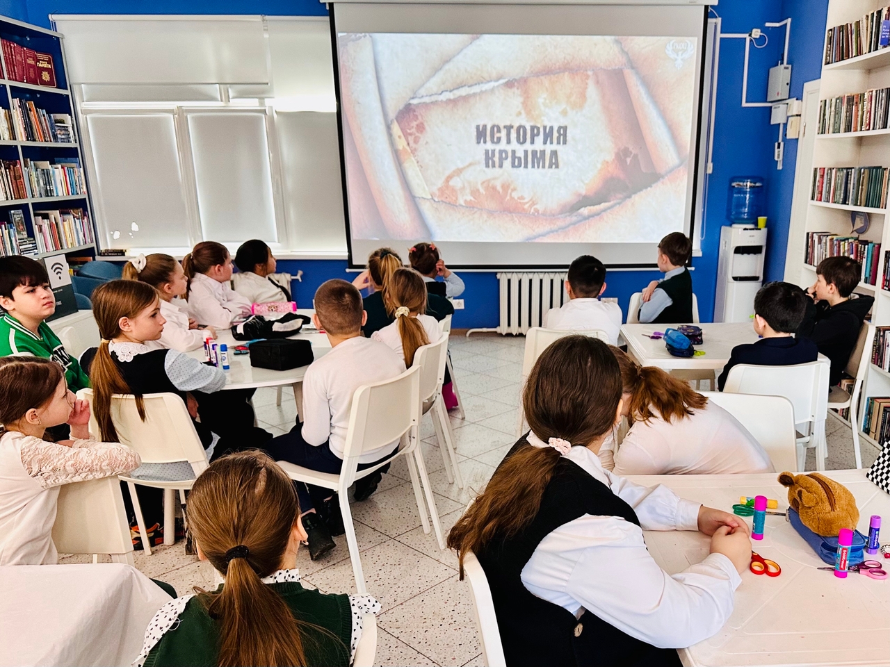 18 марта Решоткинская сельская библиотека им. Ю.П. Артюхина стала площадкой для важного разговора о Родине! Ученики 3 «Р» класса школы «Развитие» приняли участие в мероприятии «Крым и Россия — одна судьба». Ребята изучали историю и узнали о значении праздника, а также о ключевых событиях, взглянув на Крым через призму исторических фактов в увлекательной презентации.