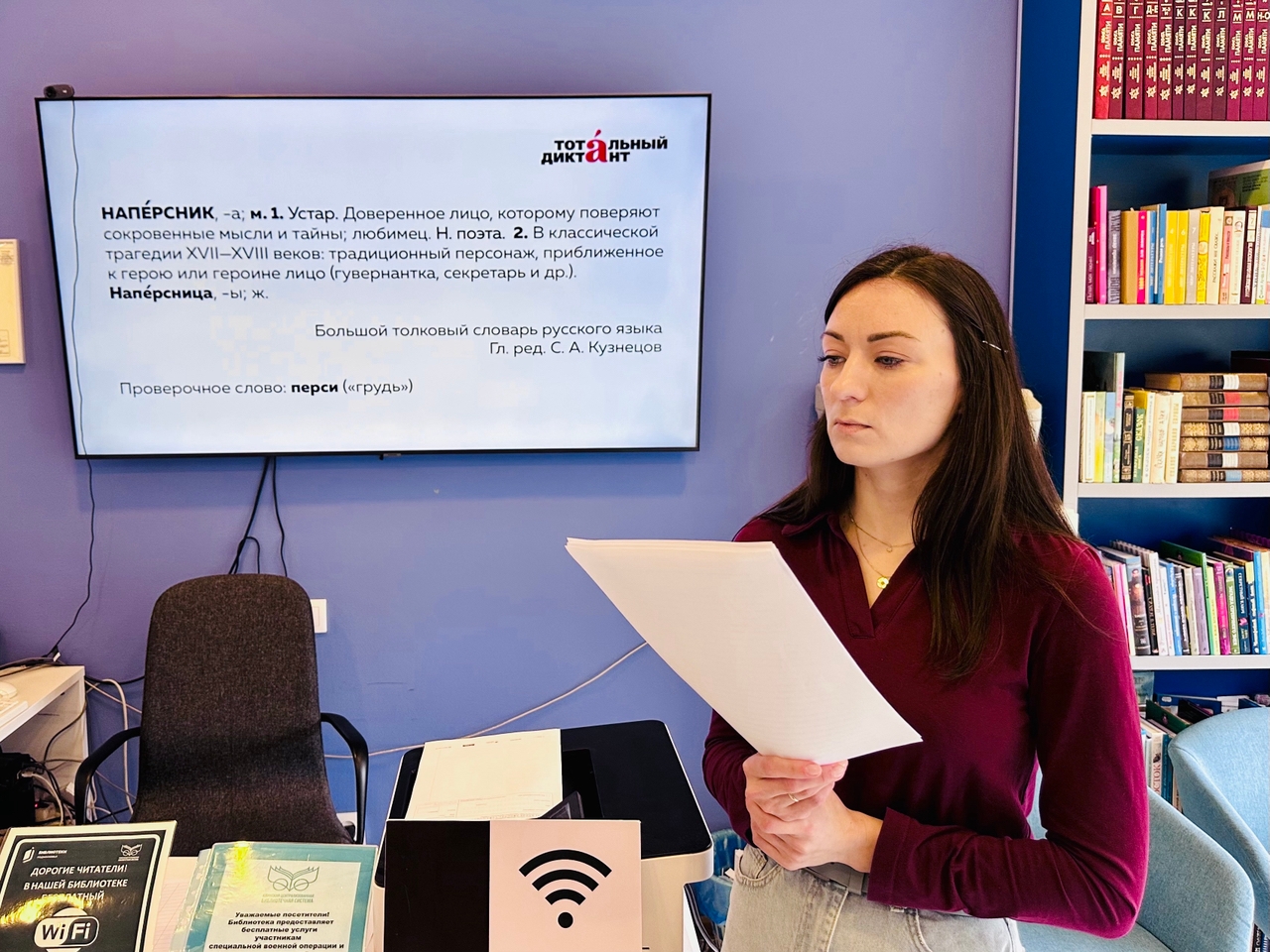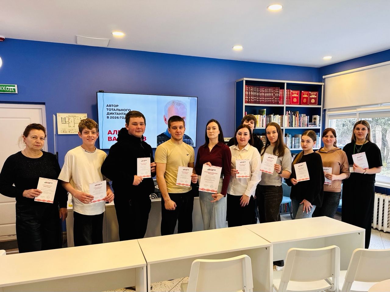 18 апреля в Решоткинской сельской библиотеке им. Ю. П. Артюхина прошла ежегодная просветительская акция «Тотальный диктант» — масштабное событие, объединяющее всех, кто ценит русский язык и стремится проверить свою грамотность. В этом году участникам предстояло справиться с текстом «Пушкин. Фамилия». Его специально для акции подготовил писатель, ректор Литературного института им. А. М. Горького Алексей Варламов. Атмосфера сосредоточенности и уважения к слову царила в стенах библиотеки, а диктовала текст Кузьмина Елена Игоревна — преподаватель русского языка и литературы школы «Развитие». Большое спасибо Елене Игоревне за чёткое и выразительное прочтение!
