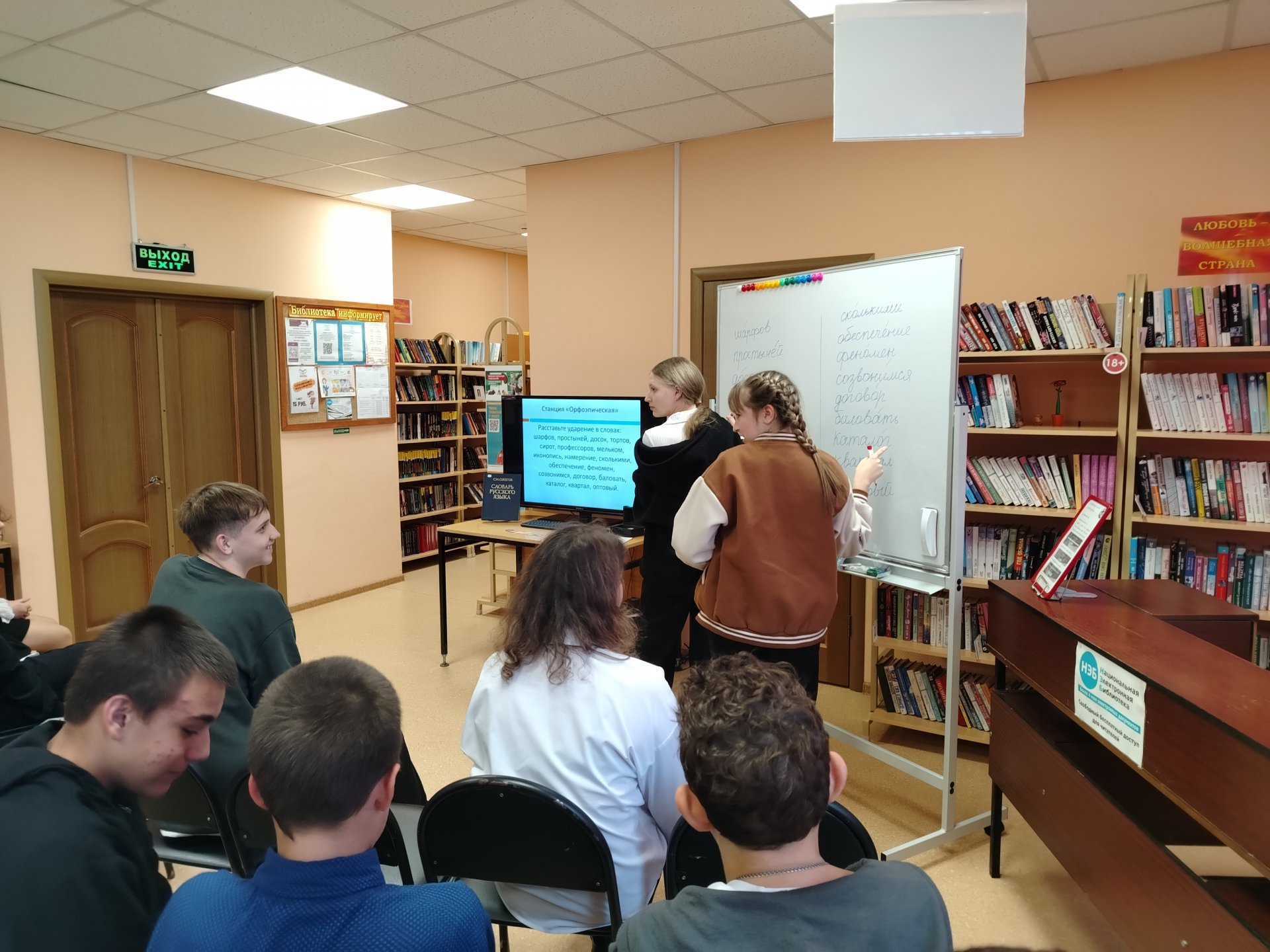 После этого юные читатели активно включились в игру-викторину. Разделившись на две команды, участники соревновались друг с другом, демонстрируя усвоенные знания. Им предстояло выполнить ряд интересных заданий: разгадать загадки-словечки, вспомнить популярные русские фразеологизмы, правильно распределить слова по различным грамматическим категориям, расставить ударения в словах, разгадать логогрифы.