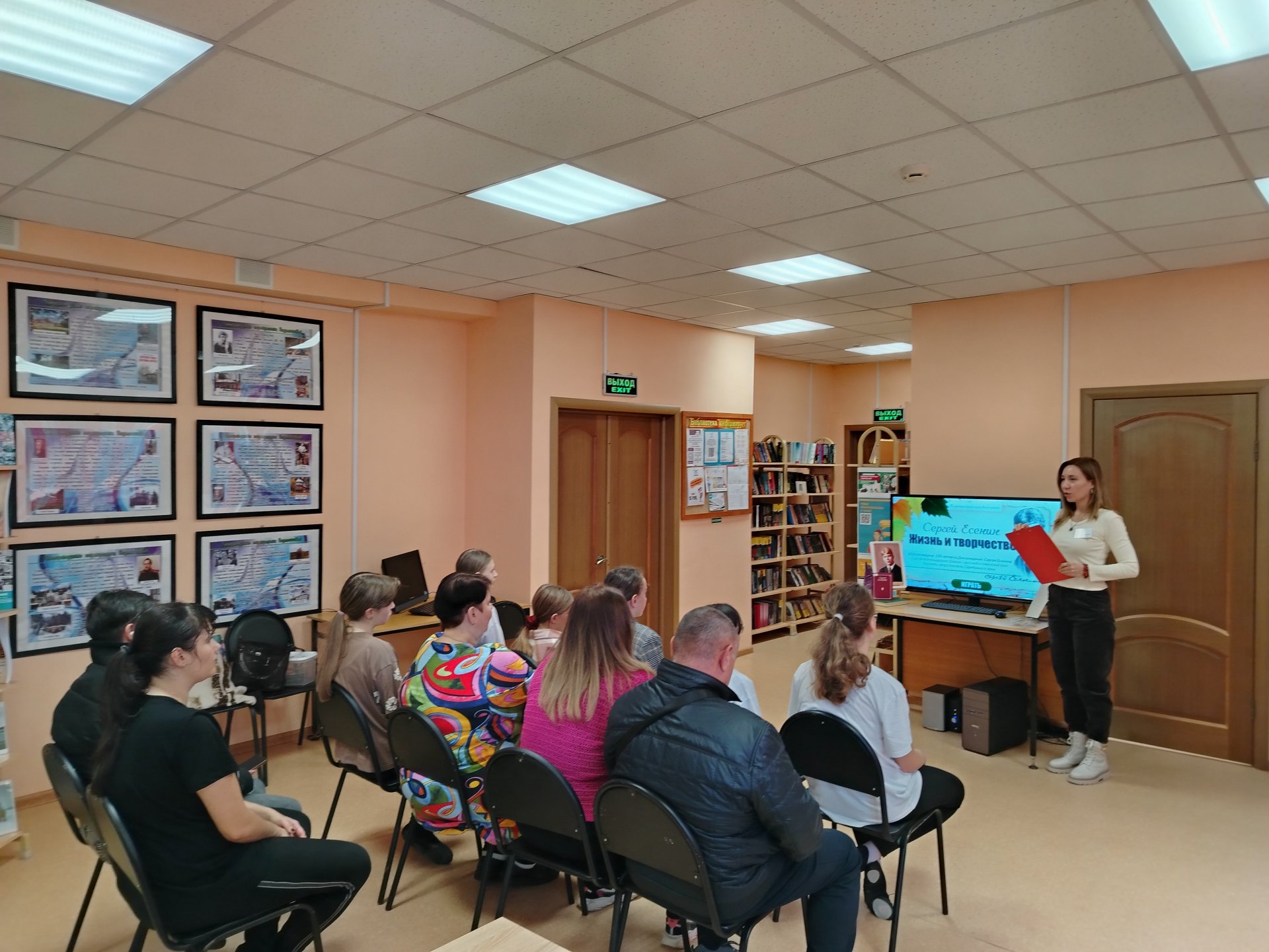 8 октября в Слободской сельской библиотеке прошел литературный вечер «Сергей Есенин: образ, стихи, эпоха», посвященный 130-летию со дня рождения выдающегося классика Сергея Александровича Есенина.
