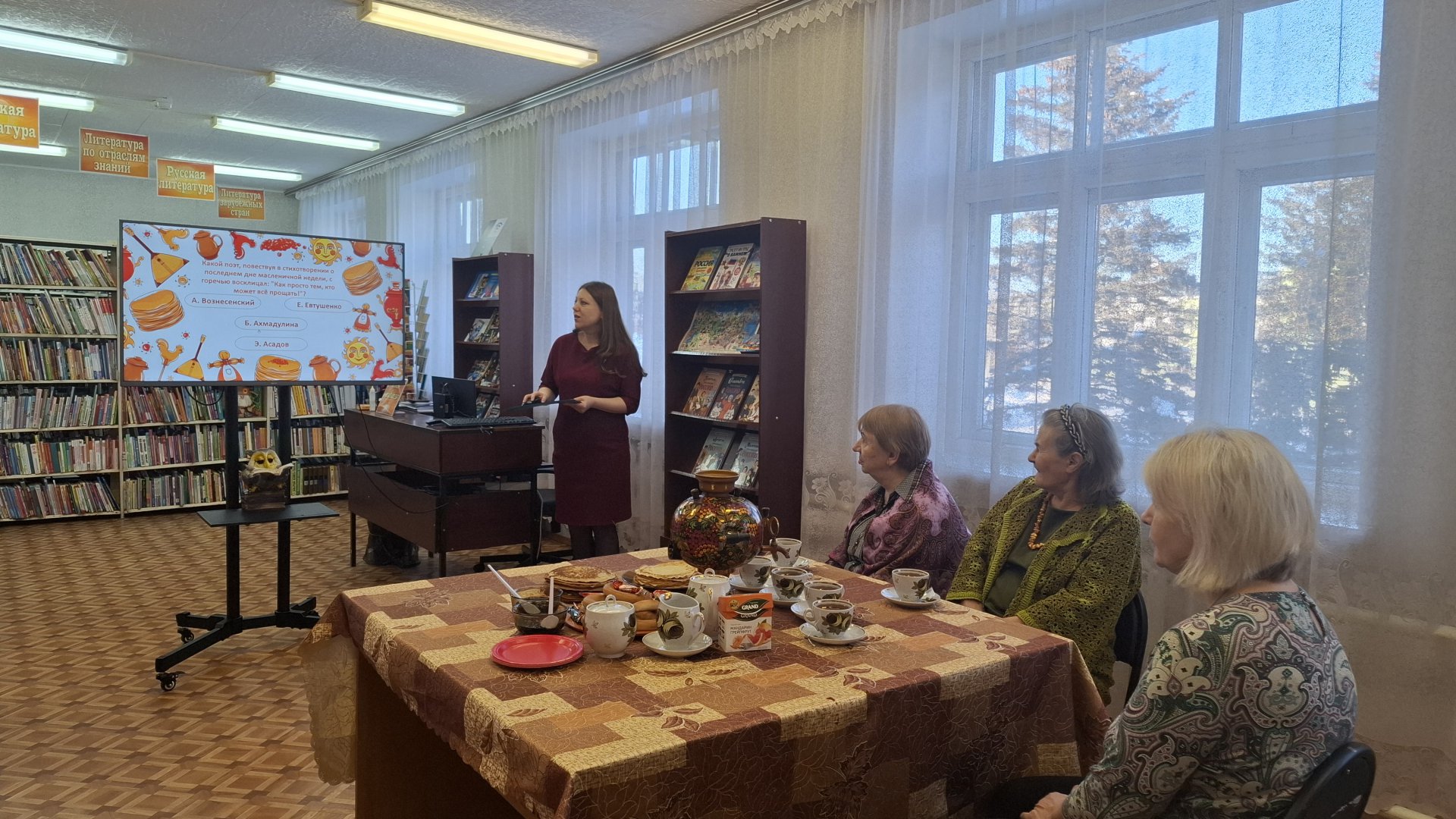 17 февраля в Спас-Заулковской сельской библиотеке в рамках губернаторской программы «Активное долголетие» прошел фольклорный праздник «Широкая масленица», который был приурочен к одному из самых любимых народных праздников – проводам зимы. Гости мероприятия узнали об истории Масленицы, о том, как наши предки с размахом гуляли всю неделю, какие обряды соблюдали и чем потчевали друг друга. Особое внимание уделили значениям каждого дня масленичной недели — от встречи до прощёного воскресенья. Тёплая, по-домашнему уютная встреча подарила гостям хорошее настроение, живое общение и радость от прикосновения к народным традициям. Завершились посиделки традиционным чаепитием с ароматными блинами.