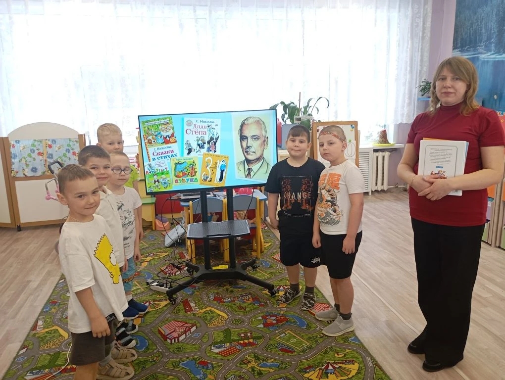 Ведущая открыла встречу замечательным стихотворением Михалкова «А что у вас?». Дети познакомились с биографией Михалкова, услышали интересные факты из жизни и творчества, узнали о том, что Сергей Владимирович является автором гимна нашей страны, и что ему принадлежат слова, высеченные на плите на могиле Неизвестного солдата – «Имя твое неизвестно, подвиг твой бессмертен». Особое внимание библиотекарь уделила поэтическому сборнику Михалкова «А что у вас?», рассказала историю создания этой книги, которая в этом году отмечает 90 лет.