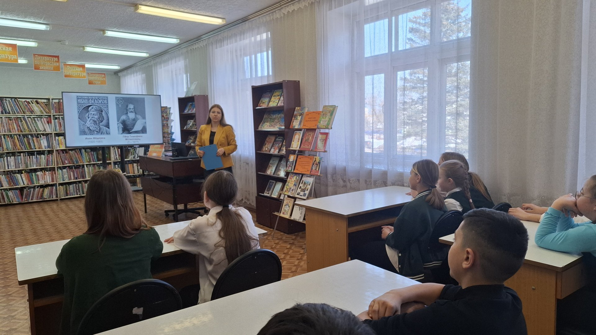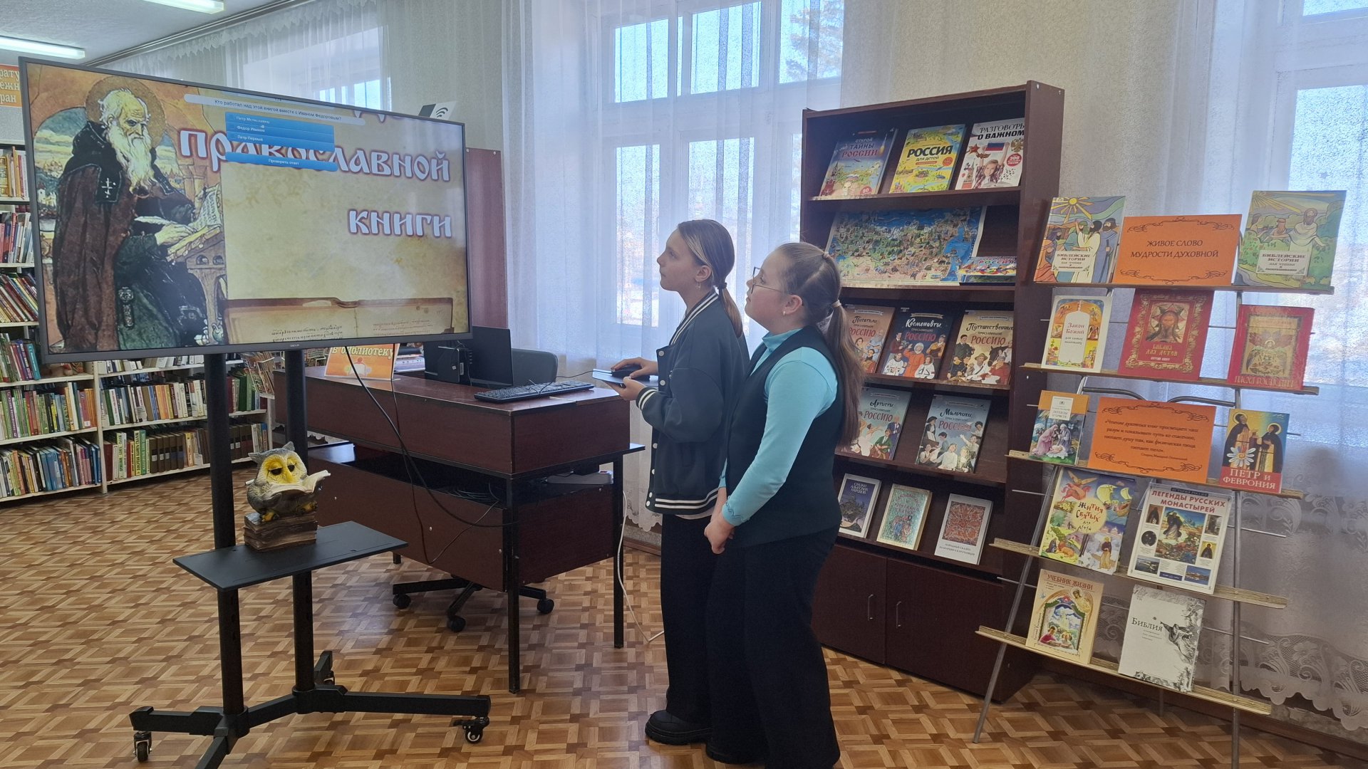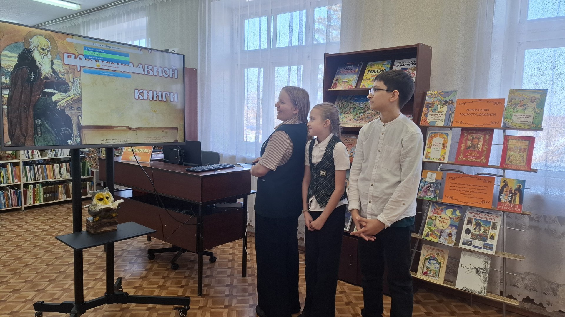 Дети узнали, что этот праздник был учреждён Священным Синодом Русской Православной Церкви по инициативе Патриарха Кирилла и приурочен к дате выпуска первой печатной книги «Апостол» Ивана Фёдорова — 14 марта 1564 года. «Апостол» входит в состав Библии и был отпечатан в типографии, основанной при поддержке царя Ивана Грозного. Библиотекарь обратил внимание школьников на то, что издание положило начало книгопечатанию и сыграло огромную роль в распространении православной веры и культуры.
