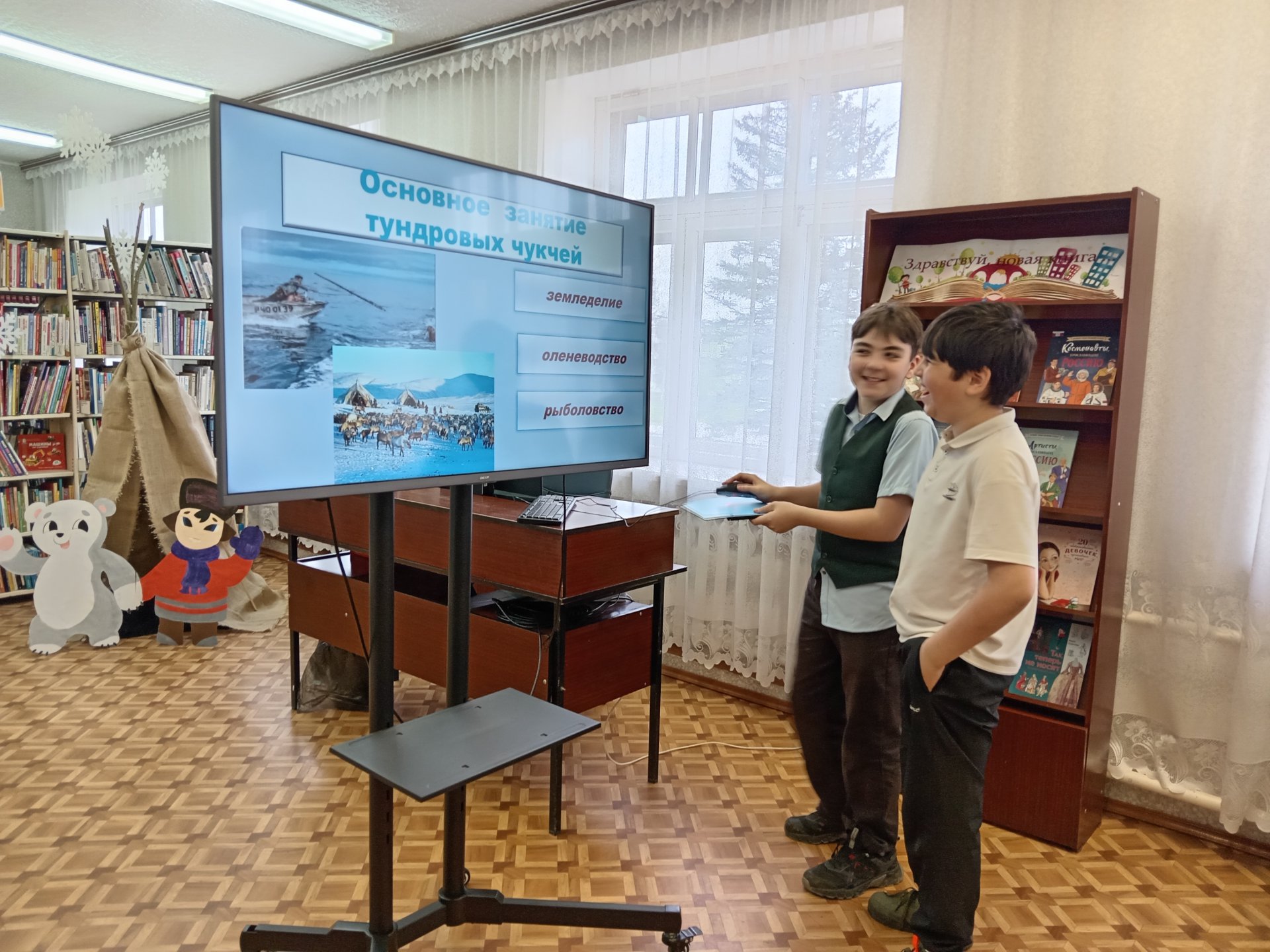 23 апреля в Спас-Заулковской сельской библиотеке прошла интерактивная игра «Тайны Чукотки», посвящённая Году единства народов России. Ученики школы «Планета детства» с огромным удовольствием ответили на непростые вопросы, связанные с Чукотским автономным округом. В ходе игры ребята вспомнили о занятиях, жилищах, одежде, основной еде, транспорте коренного народа Чукотки — чукчей. Кто-то из детей блеснул знаниями, а кто-то открыл для себя новое. В завершении мероприятия двое из ребят прочитали для одноклассников чукотские сказки «Юноша-тюлень» и «Нельзя оглядываться».