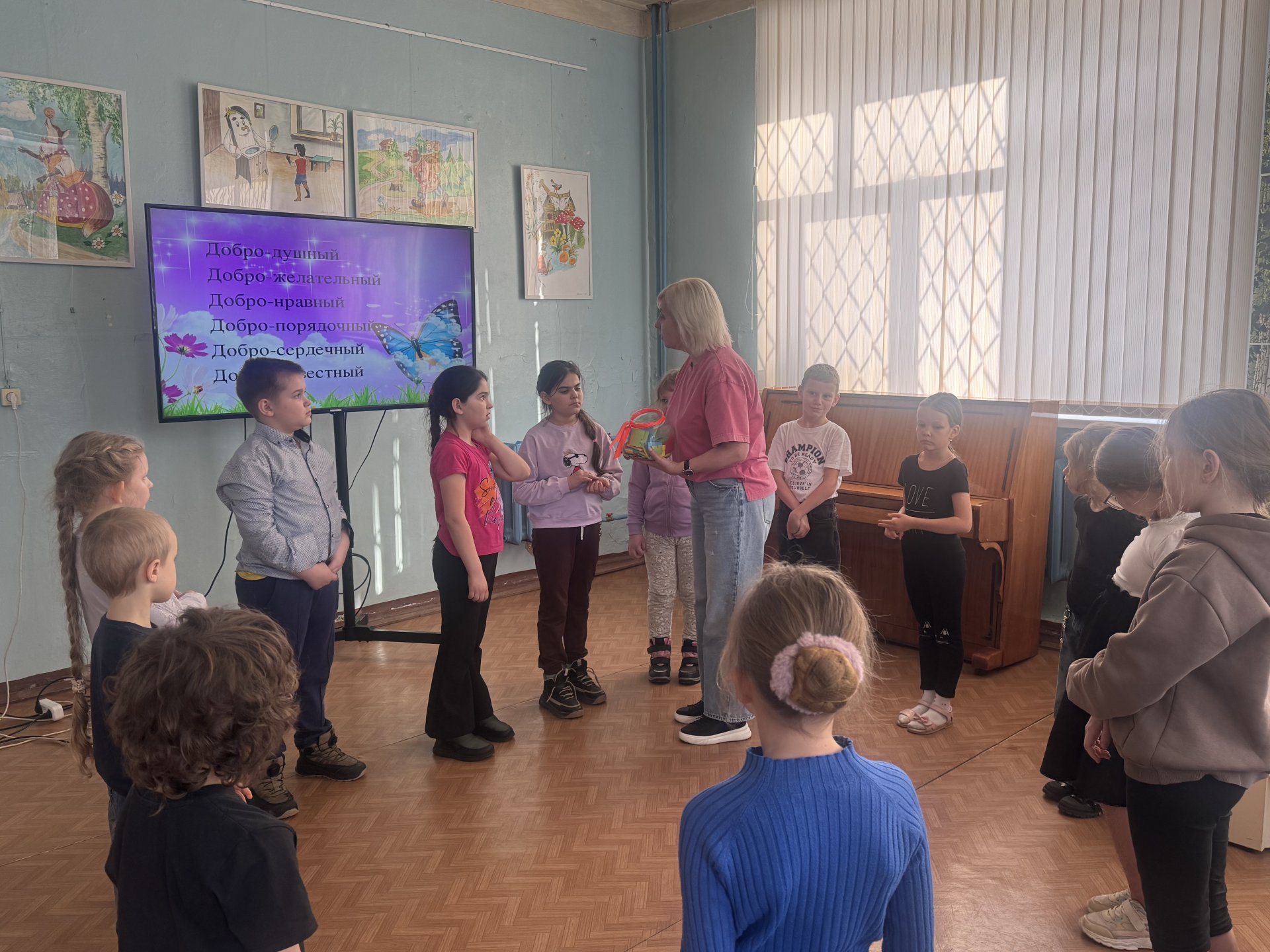 Ребятам рассказали о понятиях добра и зла, о том, как важна доброта для людей. Также им были предложены различные ситуации о доброте по отношению к близким людям, по отношению к окружающим, и дети давали собственную оценку фактам, событиям и жизненным ситуациям, вспомнили пословицы и поговорки со словом «Доброта», поиграли в игры: «Чем мы похожи», «Проявляете ли вы толерантность?», «Комплименты», «Дружный хоровод». В конце мероприятия дети осознали, что быть добрым, вежливым и культурным человеком — задача непростая. Этому нужно учиться всю жизнь.