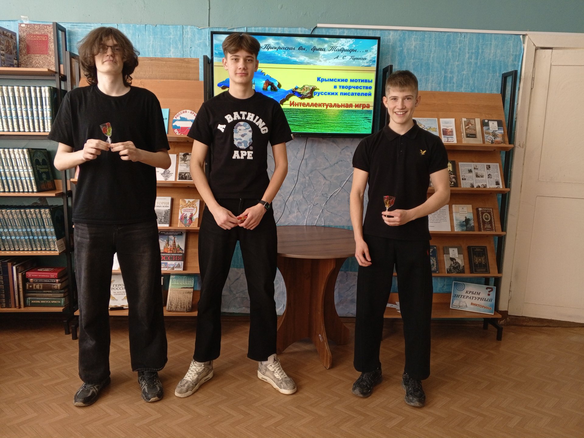 Игра «Крымские мотивы в творчестве русских писателей» стала хорошей проверкой знаний и прекрасной возможностью для старшеклассников расширить свой кругозор и по-новому взглянуть на творчество русских классиков. В результате жарких споров победу одержала команда юношей «Юридический справочник», которые заслуженно получили свой сладкий приз.