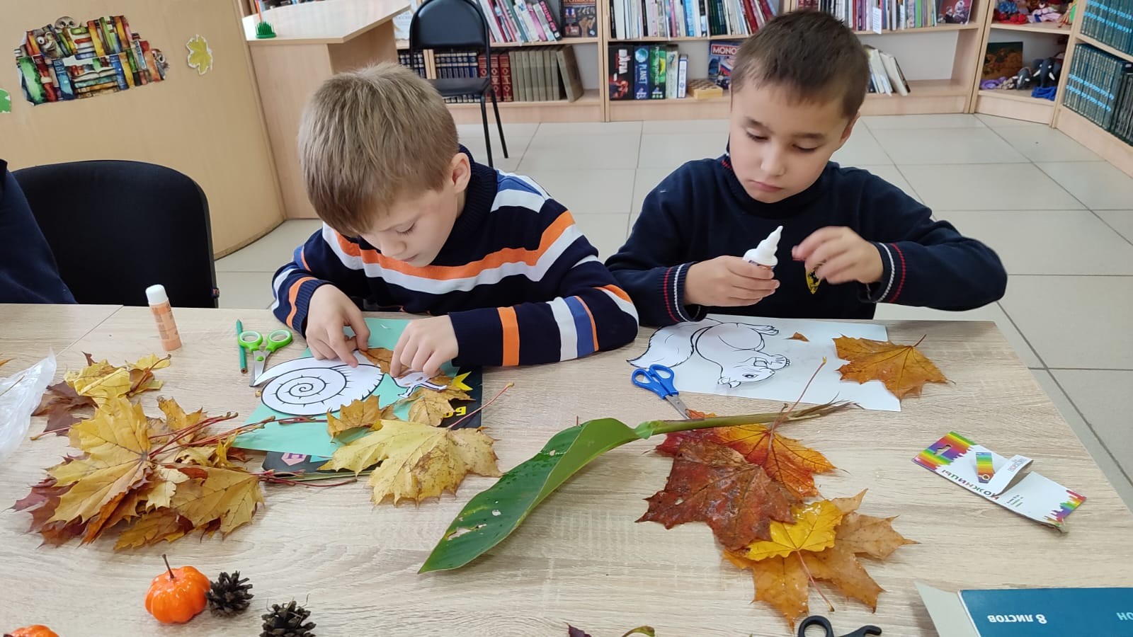 Затем началась самая интересная часть мероприятия, где дети работали над созданием оригинальных поделок из разноцветных осенних листьев. У всех получились незабываемые композиции с изображением птиц, животных и настоящих пейзажей.
