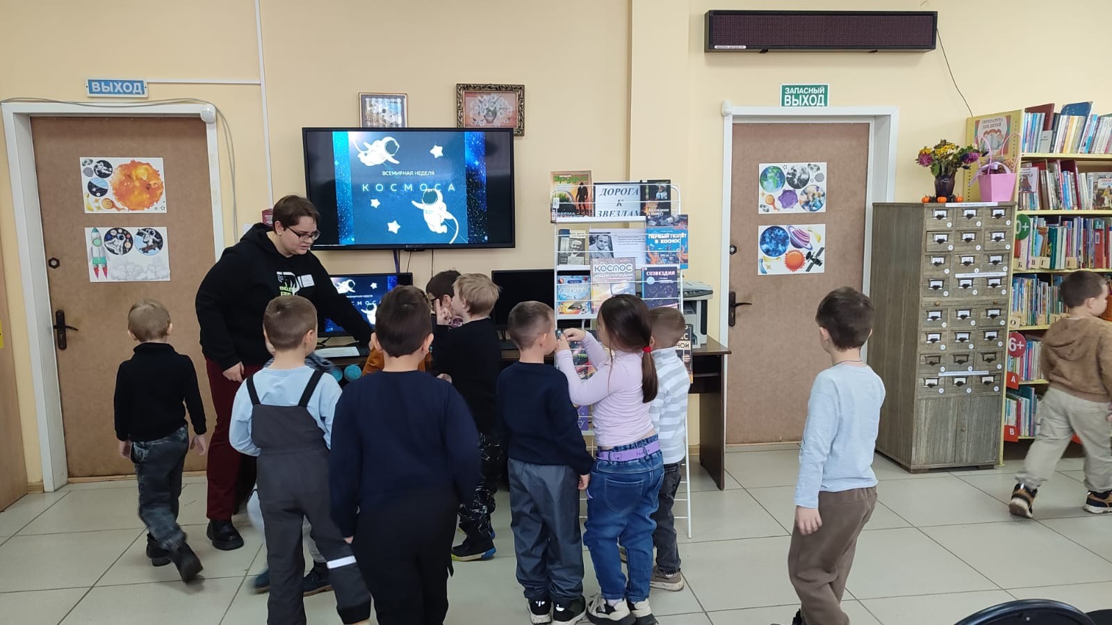 Воронинская сельская библиотека пригласила воспитанников детского сада отметить Всемирную неделю космоса увлекательным мероприятием «Большое космическое путешествие».