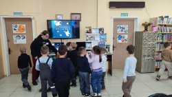 Во время виртуального перемещения по Солнечной системе малыши участвовали в познавательной беседе о космонавтах – Героях Советского Союза – Юрии Гагарине, Германе Титове, Валентине Терешковой и Юрии Артюхине, покоривших просторы Вселенной, определяли таинственного инопланетянина по его описанию, знакомились с обитателями иных миров, отгадывали космические загадки, собирали звездный паззл, учились ориентироваться среди множества галактик и узнали много нового о возможных формах жизни на далеких планетах.
