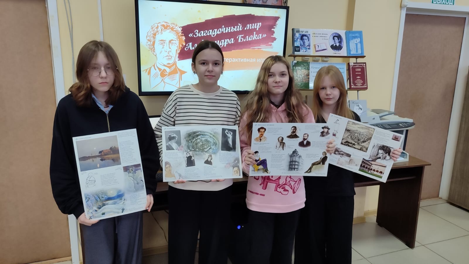 При помощи планшетной выставки учащиеся ознакомились с фотографиями, иллюстрациями, рукописными страницами и фрагментами книг Блока. Это позволило глубже проникнуться атмосферой эпохи Серебряного века. Завершилось мероприятие увлекательной интерактивной игрой под названием «Загадочный мир Александра Блока». Читателям были предложены задания, включающие вопросы на знание биографии и цитат из его произведений.