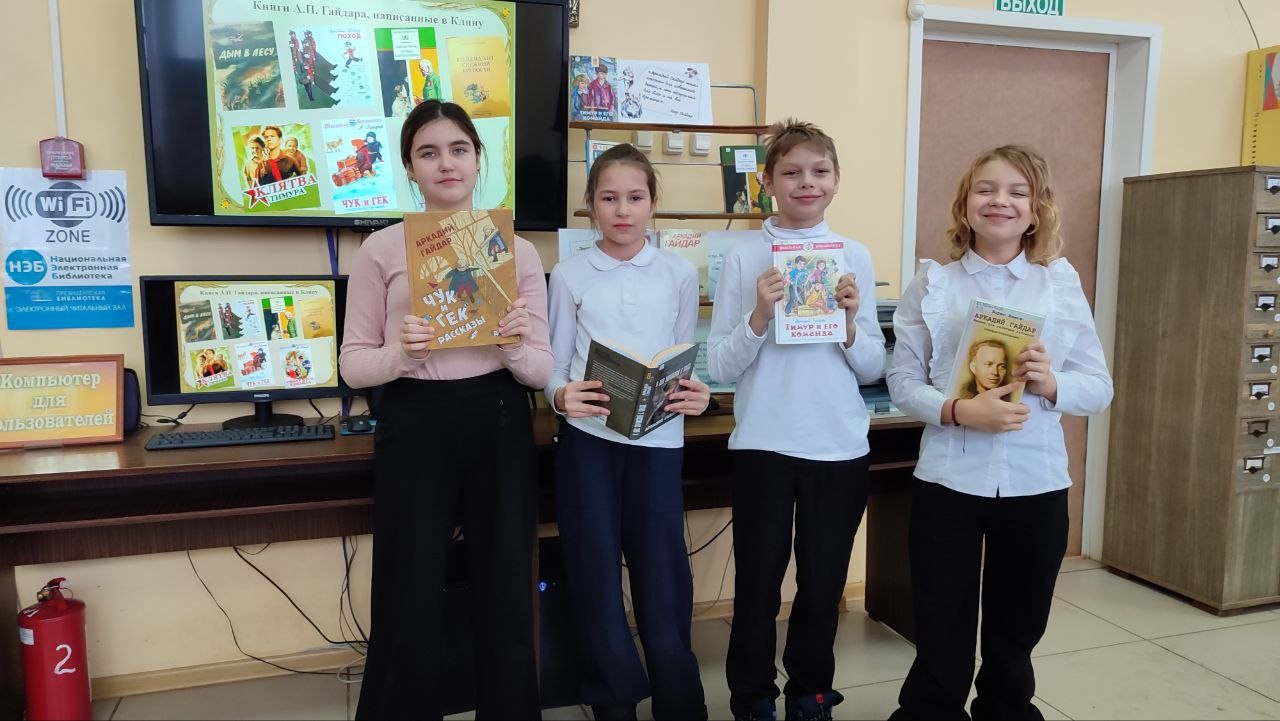 21 января юные читатели на литературном знакомстве «Любимые герои книг А. П. Гайдара» услышали о героической судьбе писателя, который провёл в Клину последние годы своей жизни. Они познакомились с героями его замечательных историй, а также посмотрели художественный фильм режиссера Алексея Мороза «Р.В.С.», снятый по одноименной повести А. П. Гайдара. В основу фильма вошли реальные события периода Гражданской войны, когда красноармейцы гонялись за бандами, банды за красноармейцами, а атаманы дрались между собой.