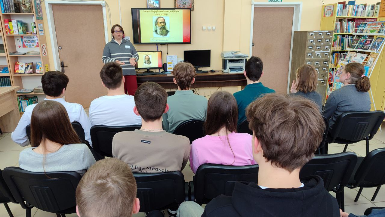 Школьники познакомились с жизнью и творчеством великого сатирика, ключевыми темами произведений и особенностями персонажей. Они узнали, что писателю приписывают авторство целого ряда слов, наиболее известными из них являются «халатность» и «мягкотелость», ярко отражающие его критическое отношение к порокам его времени. Затем ребята приняли участие в интерактивных викторинах: «Гений сатиры» и «Кто знает сказки Салтыкова-Щедрина?», демонстрируя знания произведений мастера русской литературы.