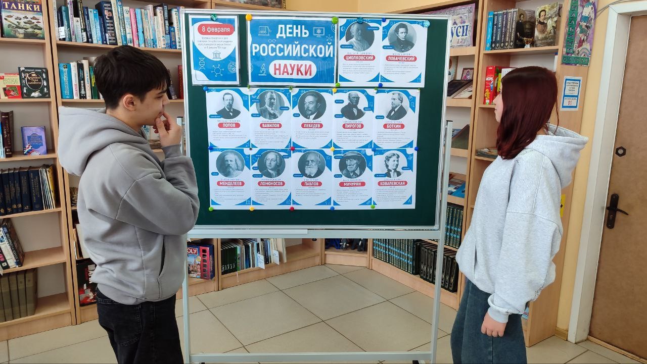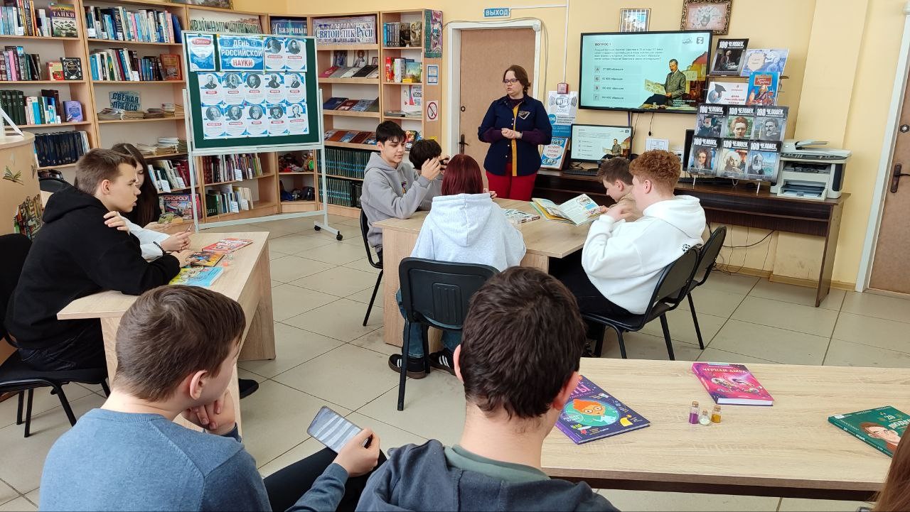 Ко Дню российской науки в Воронинской сельской библиотеке для школьников провели увлекательную игру «Наука – вперёд!». Общество «Знание» подготовило интерактивную викторину, в которой ребята проверили свои знания и узнали новые факты о научной истории нашей страны. Дети использовали смартфоны, с помощью которых выбирали ответы на вопросы, которые выводились на экран. В этой игре ребята познакомились с именами выдающихся учёных, исследователей и просветителей: Дмитрия Менделеева, Сергея Королёва, Ивана Павлова, Петра Капицы, Льва Ландау и Александра Попова. Эти великие люди оказали огромное влияние на всю историю человечества, доказав, что наука – не только знания, но и азарт, творчество и стремление к совершенству.