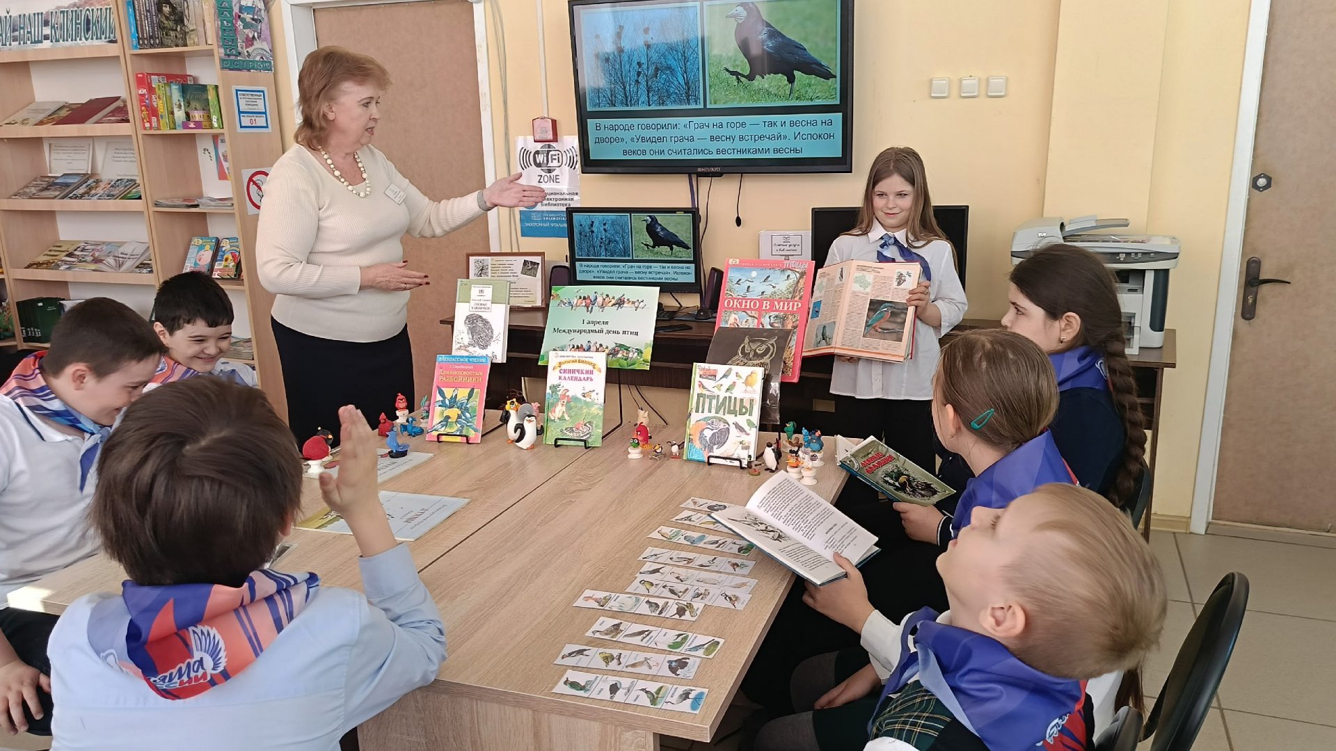 Ученики 4 «В» класса школы «Имена Победы» отметили Международный День птиц настоящим путешествием в мир пернатых! В Воронинской сельской библиотеке ребята послушали рассказ о жизни и многообразии птичьего мира, поделились историями о том, как вместе с родителями помогали пернатым пережить суровую зиму.