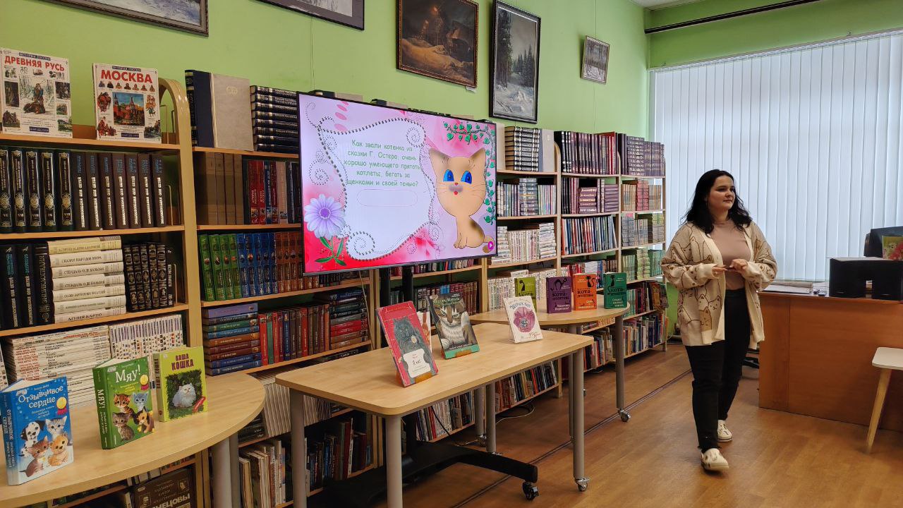 13 февраля в Центральной детской библиотеке имени А. П. Гайдара для учеников 4 «В» класса гимназии им. В. Н. Татищева прошла интерактивная викторина «Литературные кошки». Юные знатоки показали свои знания и искреннюю любовь к усатым героям. Они легко отвечали на вопросы о сказках, мультфильмах, книгах и фильмах, в которых главными персонажами были коты. Также дети посмотрели мультфильм «Кот и Мышь», участвовавший в кинопремии «Золотой Орел».