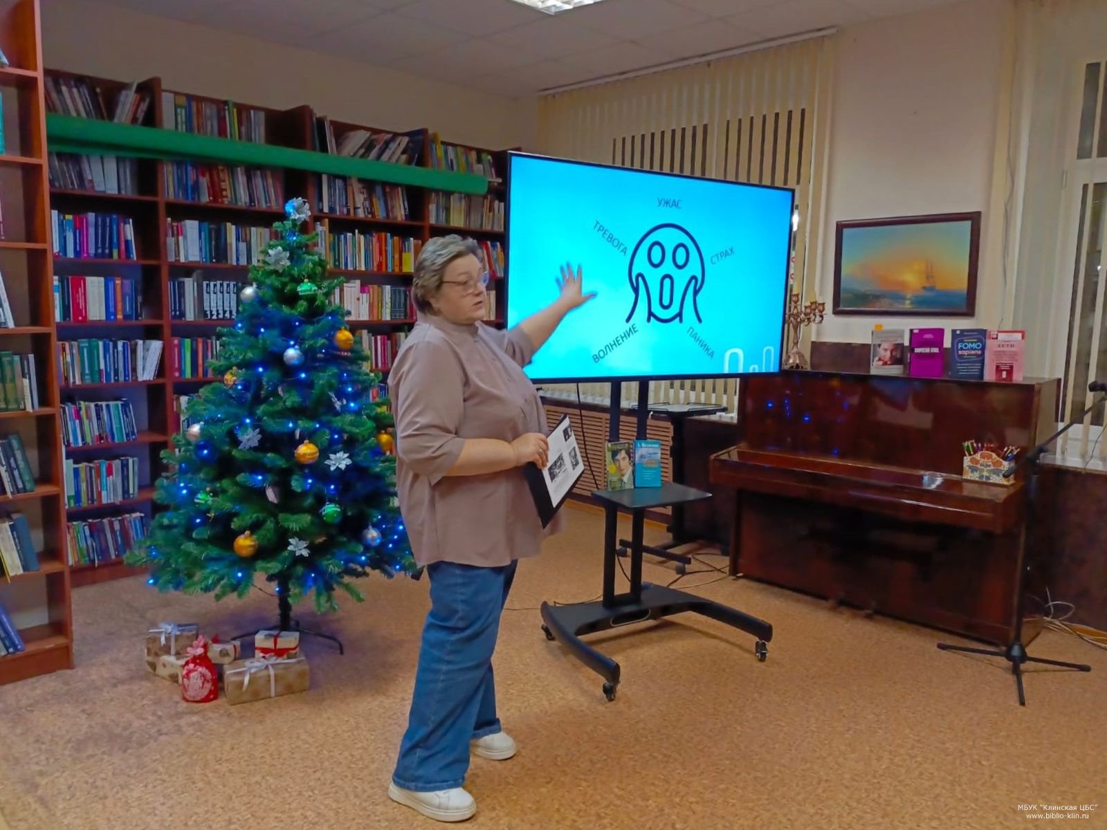 3 декабря в Центральной городской библиотеке прошло занятие «Я боюсь... Что делать со страхом?» для любителей психологии в клубе «Осознание». Слушатели поделились друг с другом своими страхами и выяснили, что они бывают различными по их происхождению. Природные страхи связаны с угрозой окружающей среды. Социальные страхи возникают под воздействием общественных и культурных факторов. Внутренние страхи возникают в глубинах человеческой психики. На встрече с психологом участники прошли тесты, освоили некоторые методы борьбы со страхами и осознали, как важно побеждать их для внутренней гармонии. Читатели поняли, что многие сложные проблемы не решить самостоятельно, иногда нужно обращаться за помощью к специалисту.