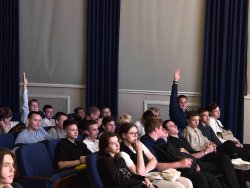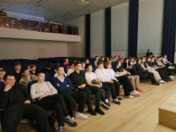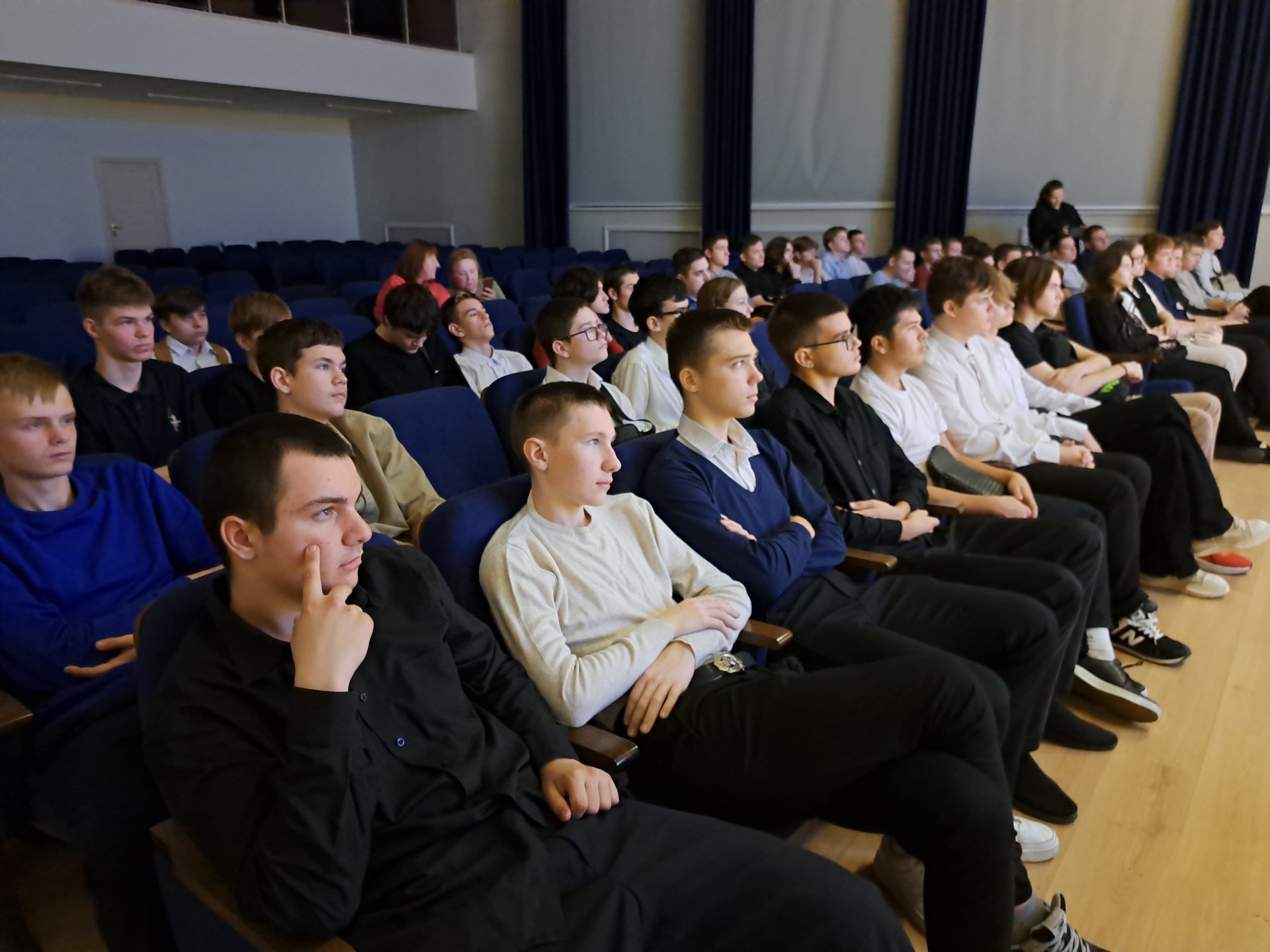 Первокурсники внимательно слушали ведущего, виртуально знакомились с достопримечательностями подмосковных городов, с литературными и историческими местами, известными музеями и усадьбами, народно-художественными промыслами.