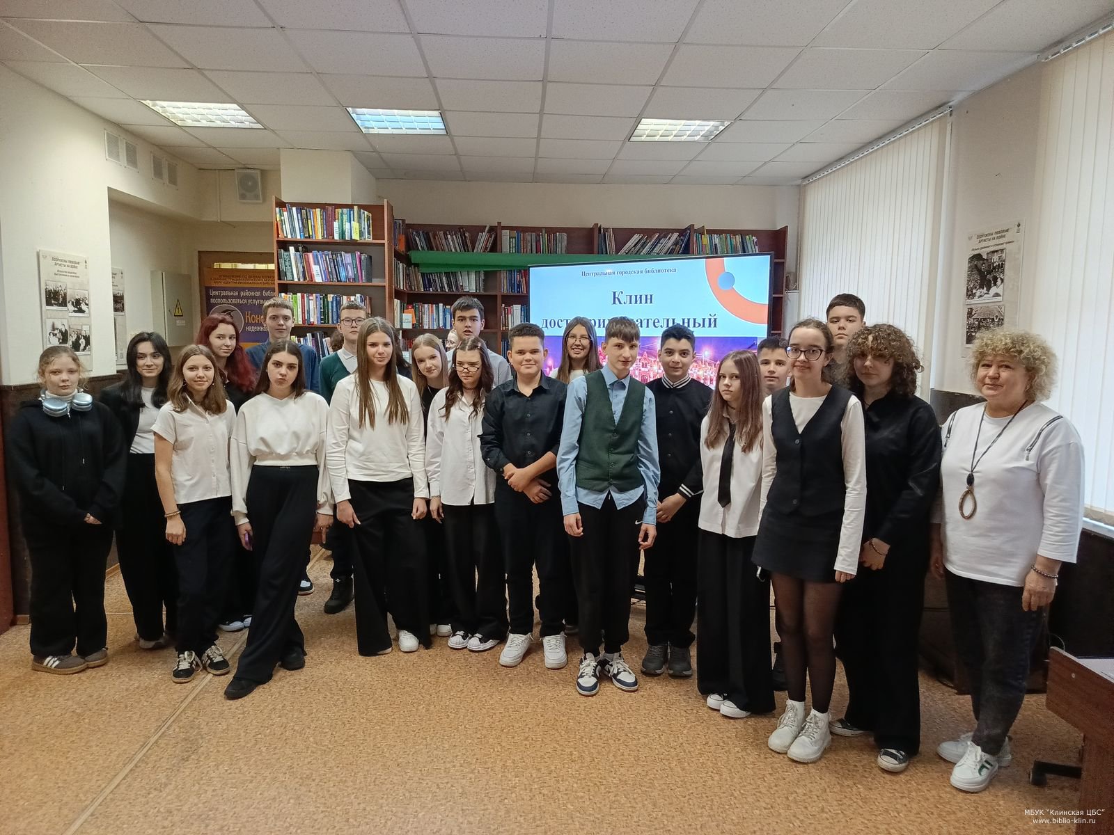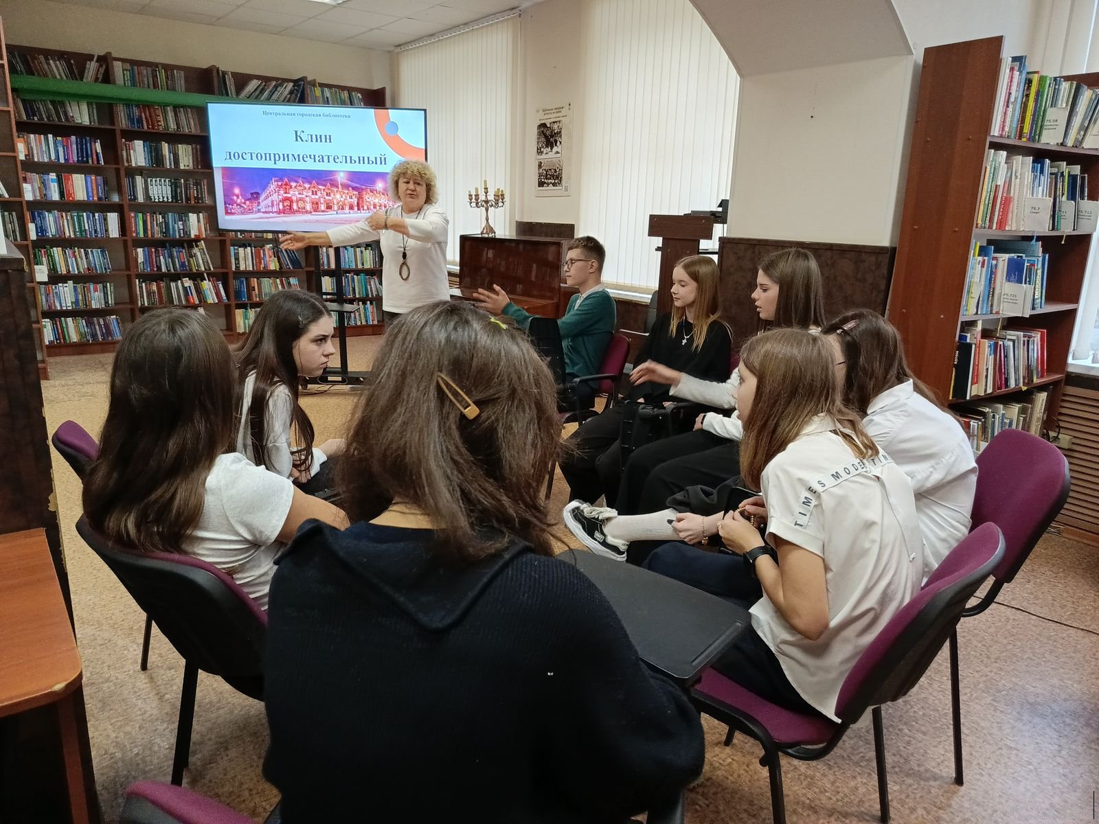 16 октября в Центральной городской библиотеке для семиклассников и восьмиклассников из гимназии им. В. Н. Татищева проведены краеведческие часы на тему «Клин достопримечательный». Они прошли в рамках программы для молодежи «Клин — сохраняя прошлое, думаем о будущем».