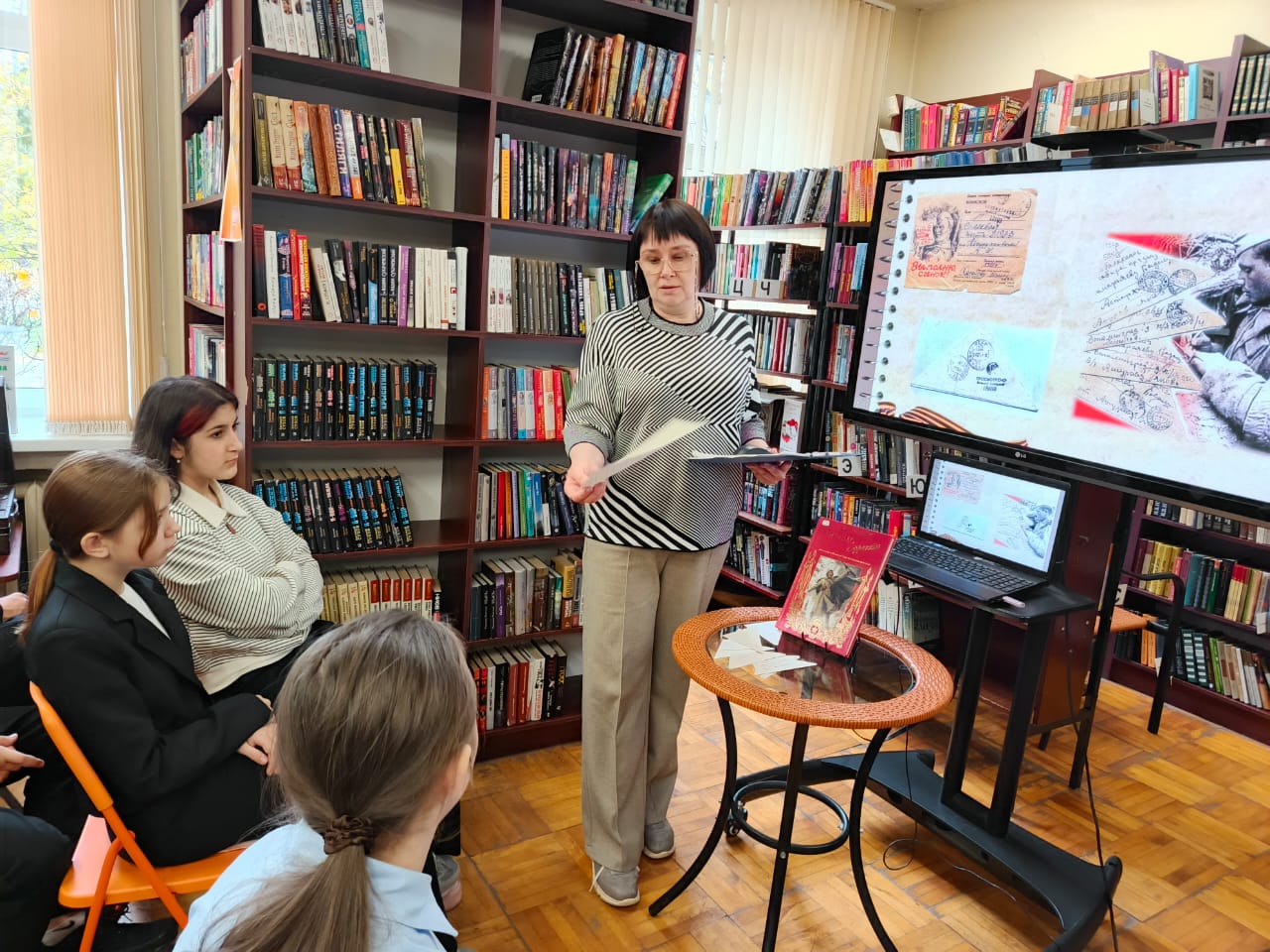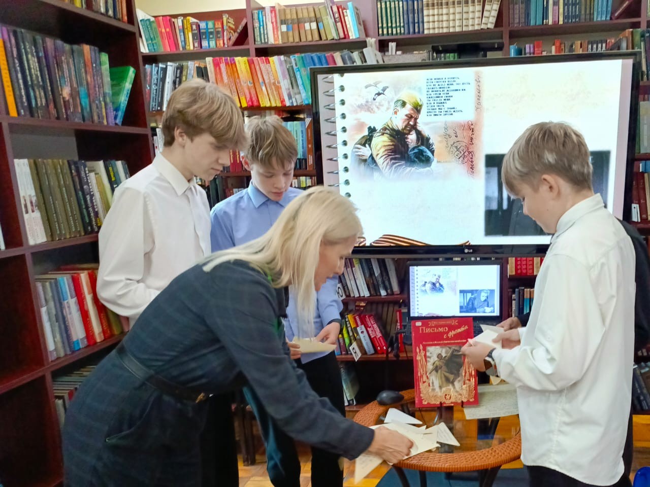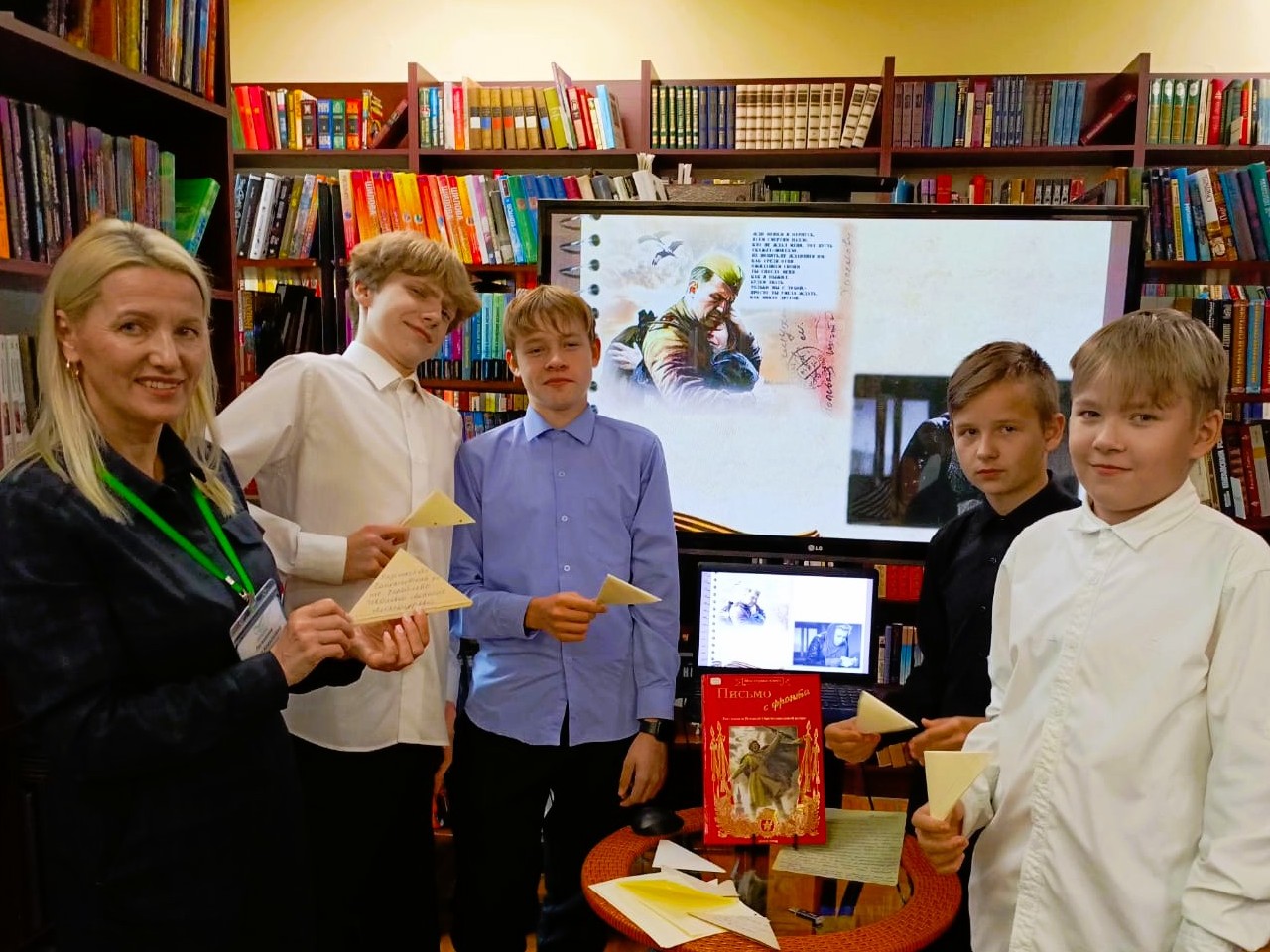Затем под руководством библиотекарей школьники приняли участие в мастер-классе по складыванию солдатского треугольника. Эти незамысловатые бумажные конверты в годы войны были символом надежды и самой дорогой связью с домом.