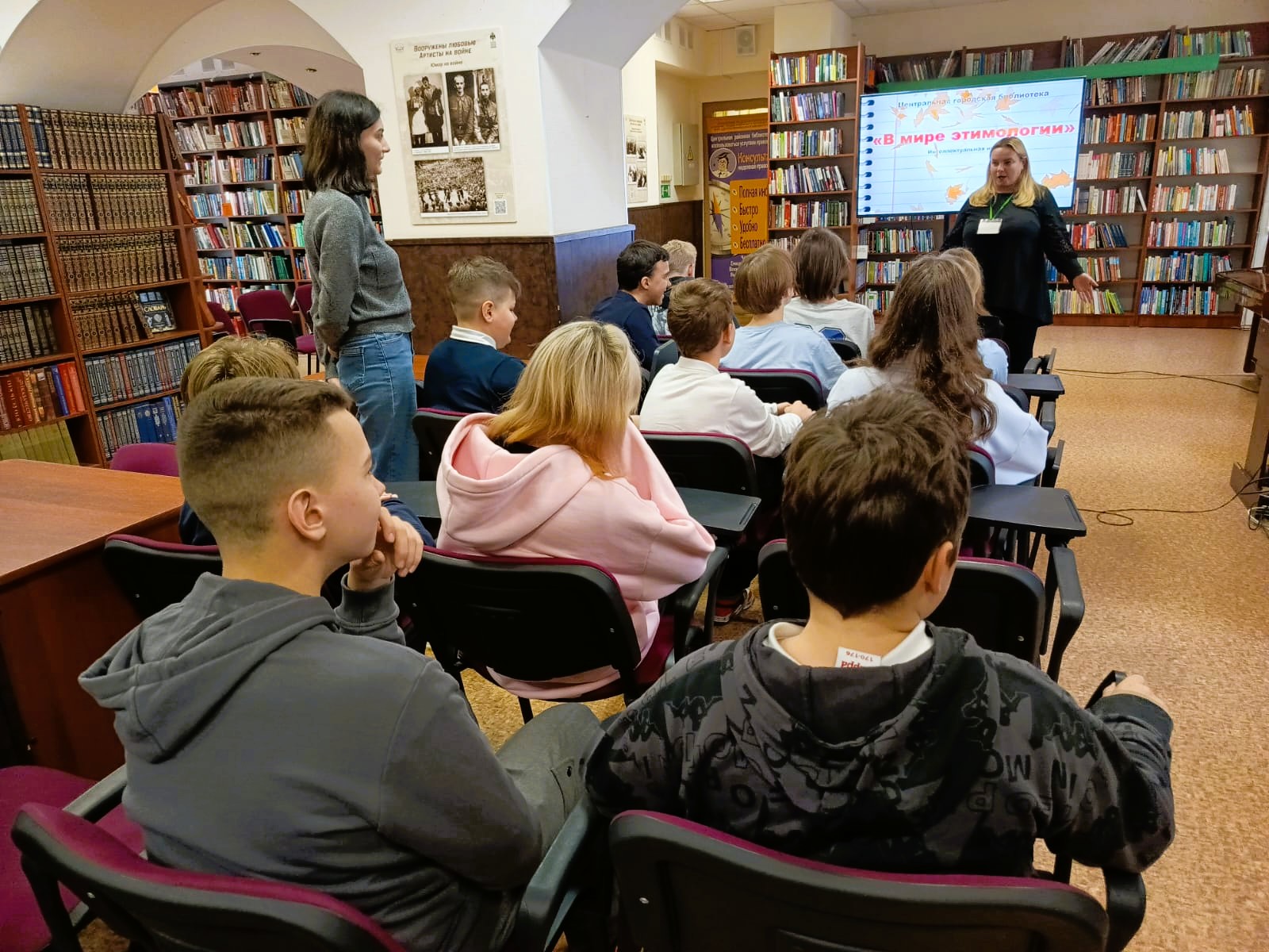 17 октября Центральная городская библиотека на время превратилась в научную лабораторию слова. Для учащихся школы «Альфа» состоялось познавательное мероприятие «В мире этимологии». Ребята узнали, как рождаются слова, как они путешествуют во времени и меняют свои значения. А кульминацией встречи стала увлекательная викторина, где юным лингвистам нужно было по звучанию и «внутреннему чувству» определить значение старинных русских слов.