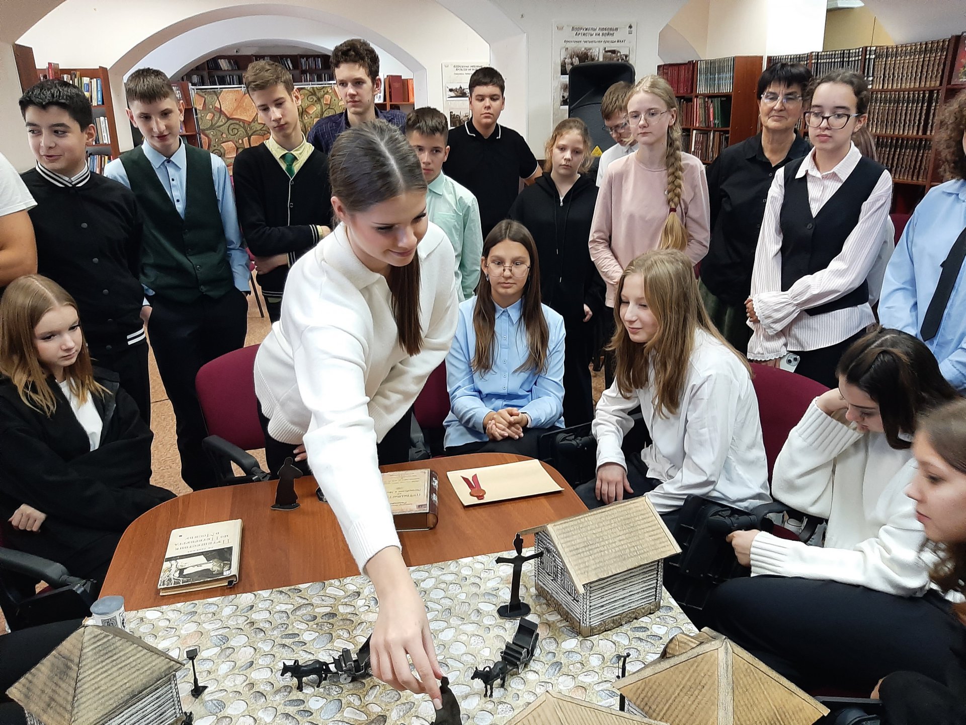 Особый интерес у школьников вызвал настольный иммерсивный спектакль «Станция Клин от Радищева до Пушкина», созданный по мотивам путешествий русских классиков. Их впечатлили необычные декорации, звуковое сопровождение и интерактивный реквизит. Увлекательные задания погрузили гимназистов в атмосферу конца XVIII — начала XIX века и сделали соучастниками происходящих событий.